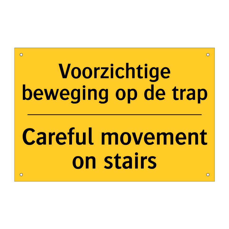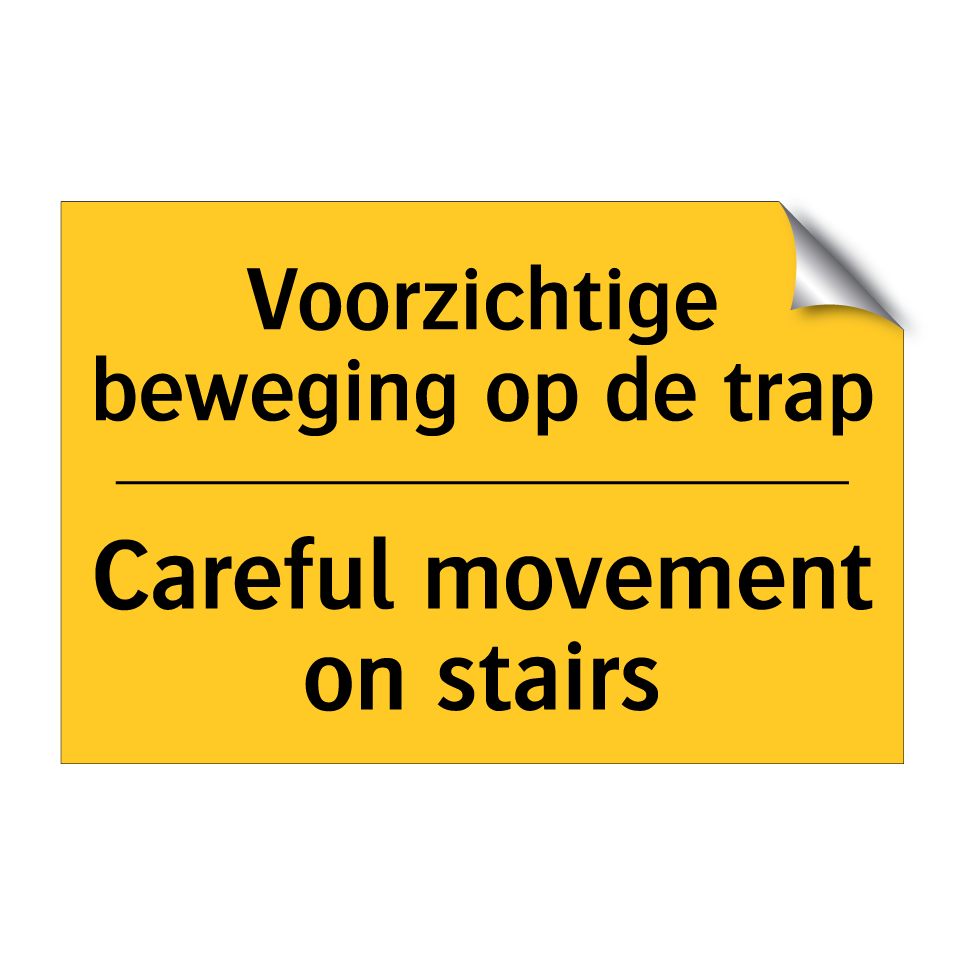 Waarschuwingsbord met de tekst Voorzichtige beweging op de trap / Careful movement on stairs