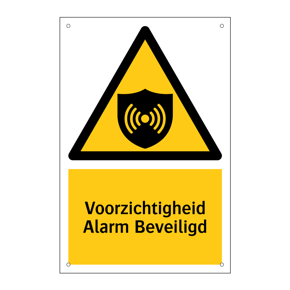 Waarschuwingsbord met de tekst Voorzichtigheid Alarm Beveiligd
