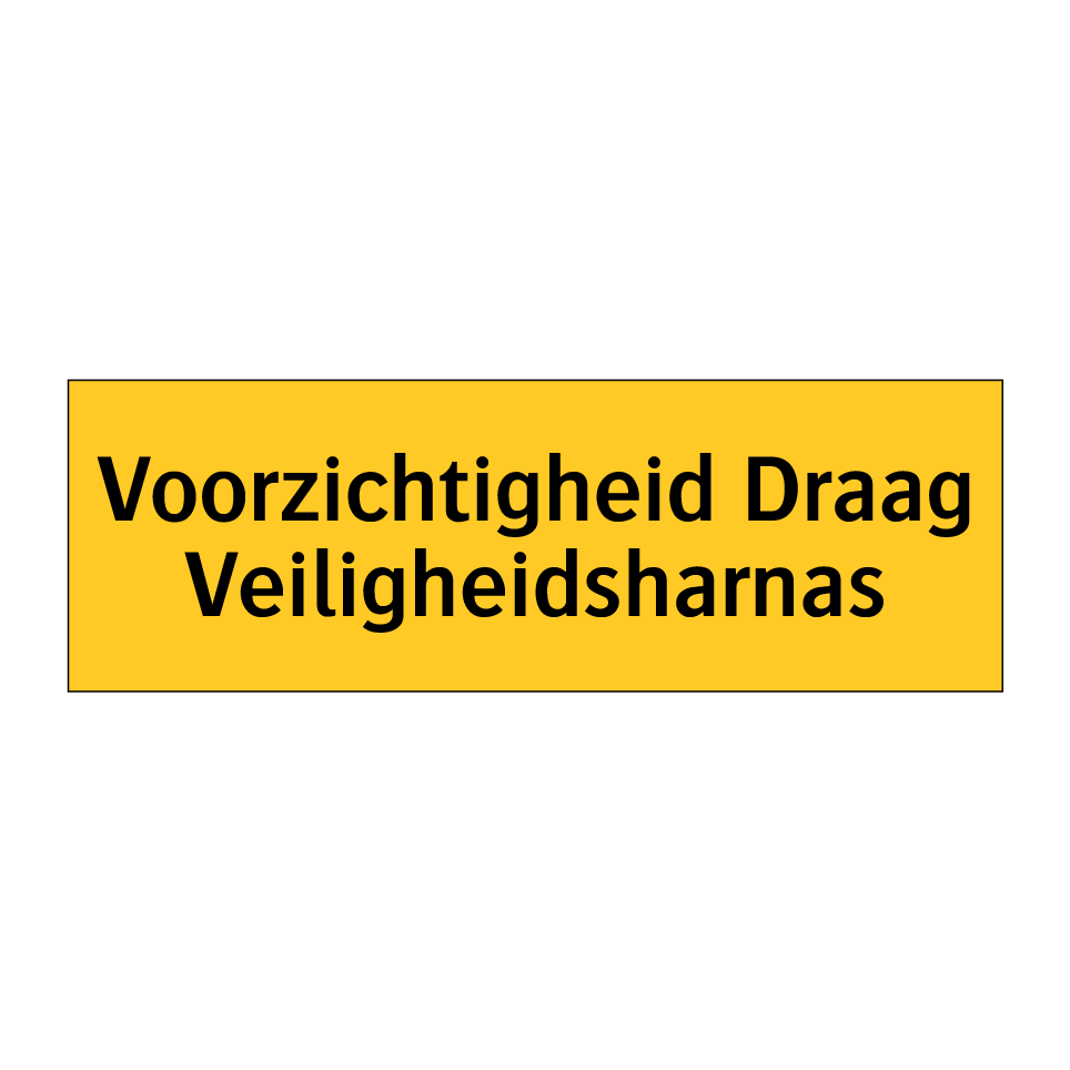Waarschuwingsbord met de tekst Voorzichtigheid Draag Veiligheidsharnas