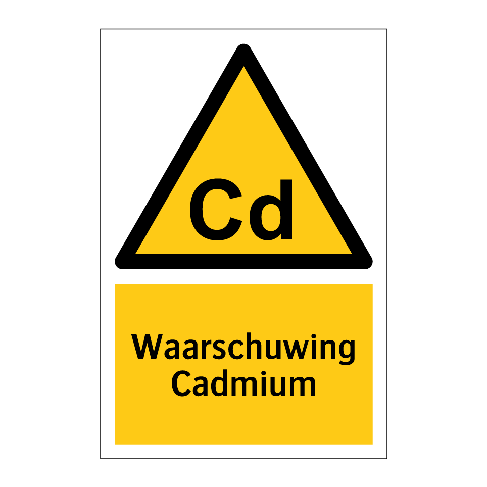 Waarschuwingsbord met de tekst Waarschuwing Cadmium