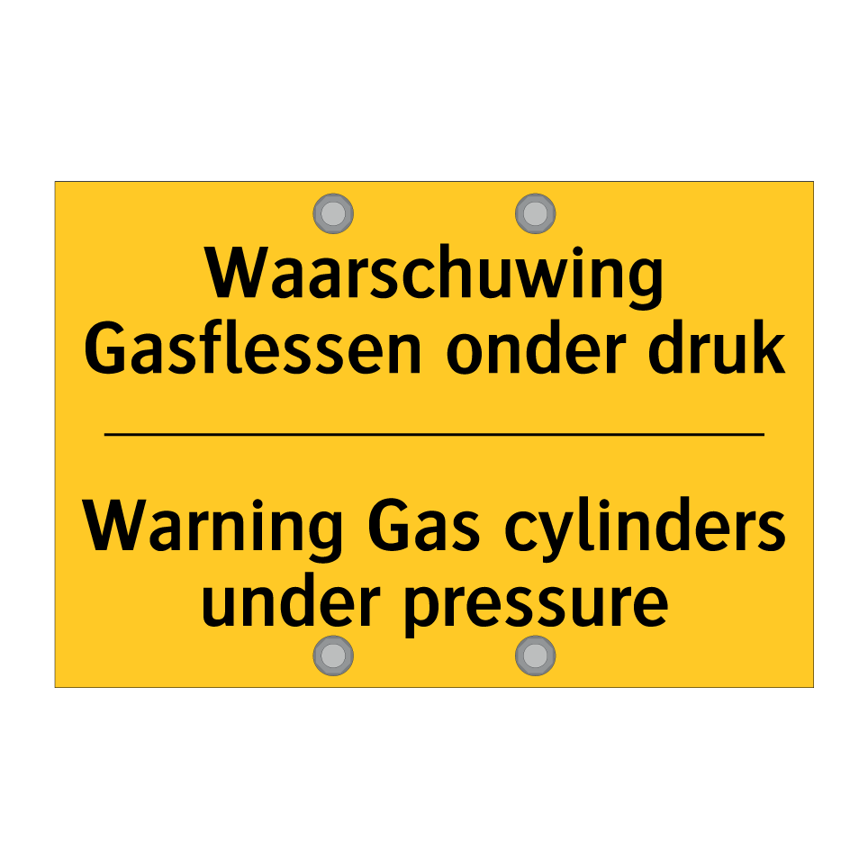 Waarschuwingsbord met de tekst Waarschuwing Gasflessen onder druk / Warning Gas cylinders under pressure
