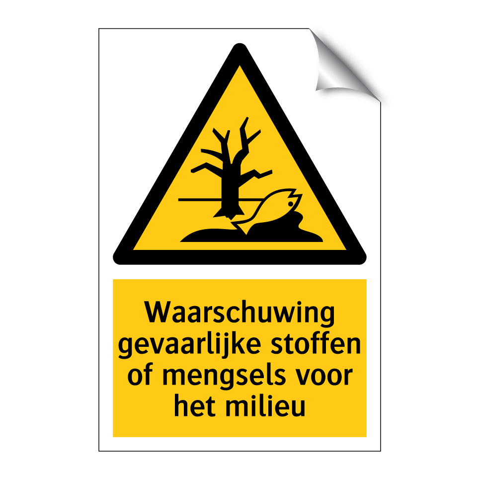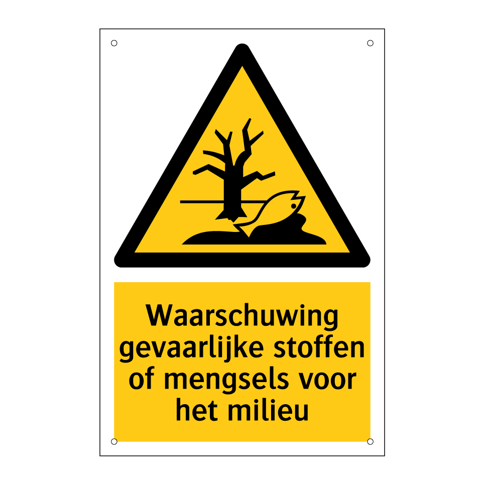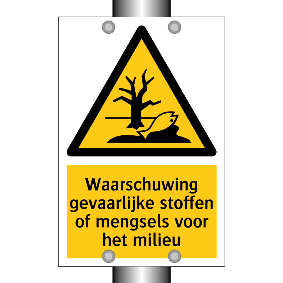 Waarschuwingsbord met de tekst Waarschuwing gevaarlijke stoffen of mengsels voor het milieu