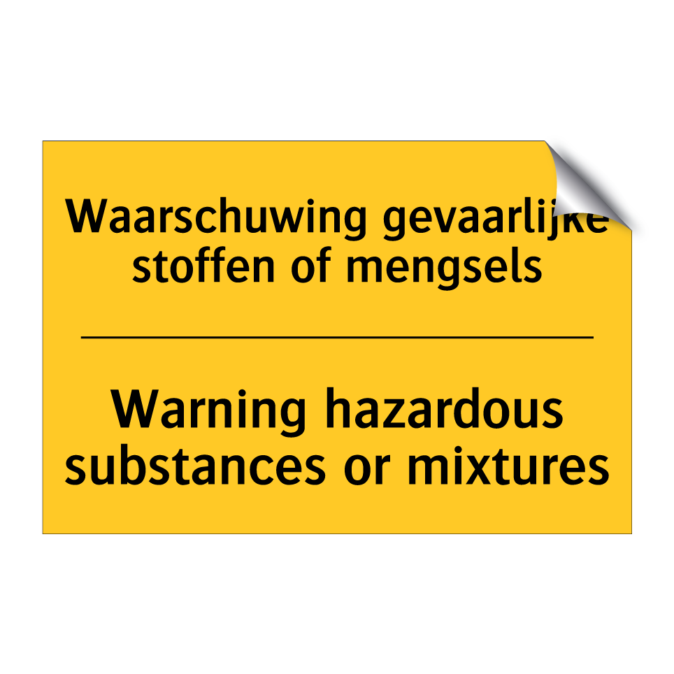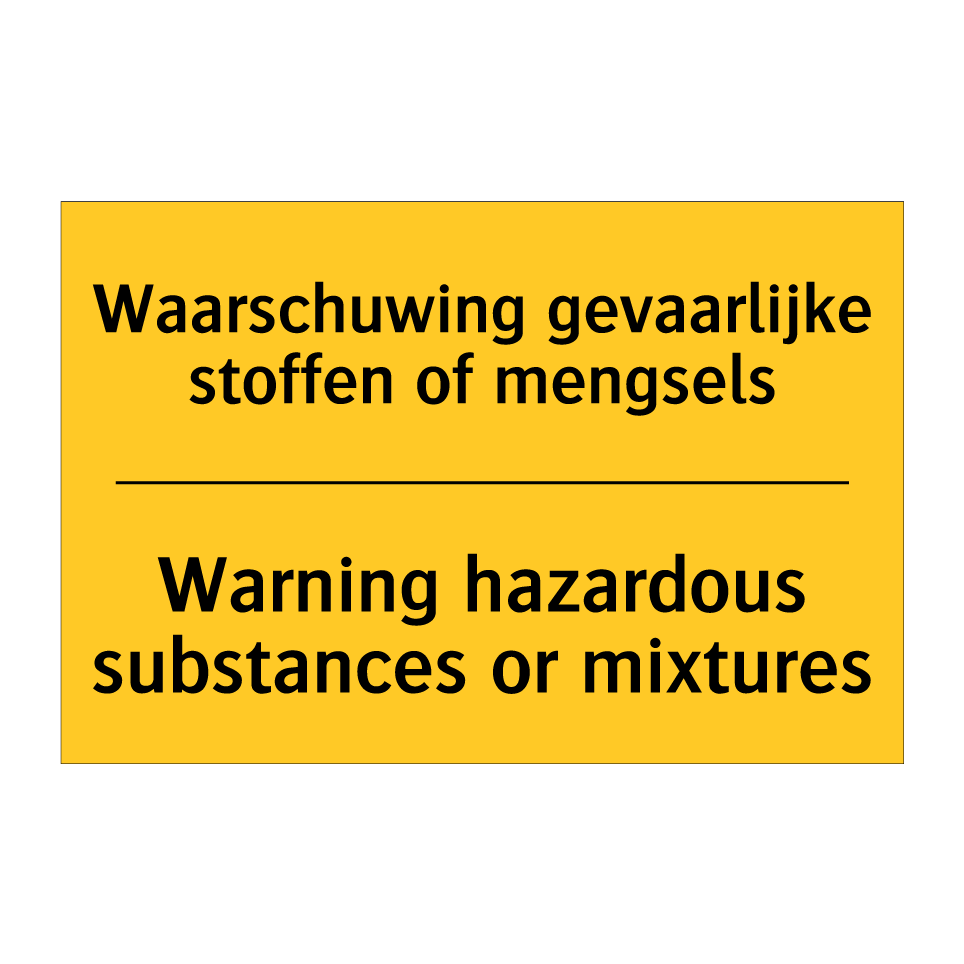 Waarschuwingsbord met de tekst Waarschuwing gevaarlijke stoffen of mengsels / Warning hazardous substances or mixtures