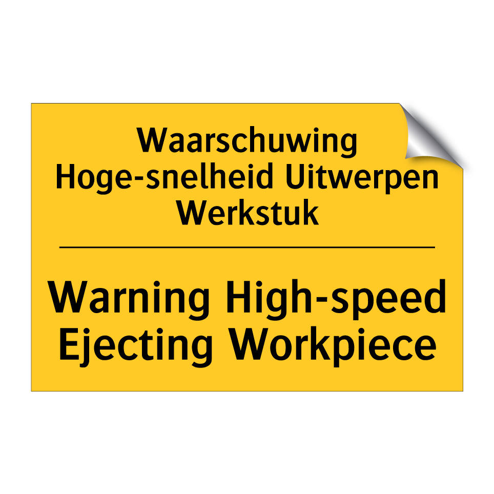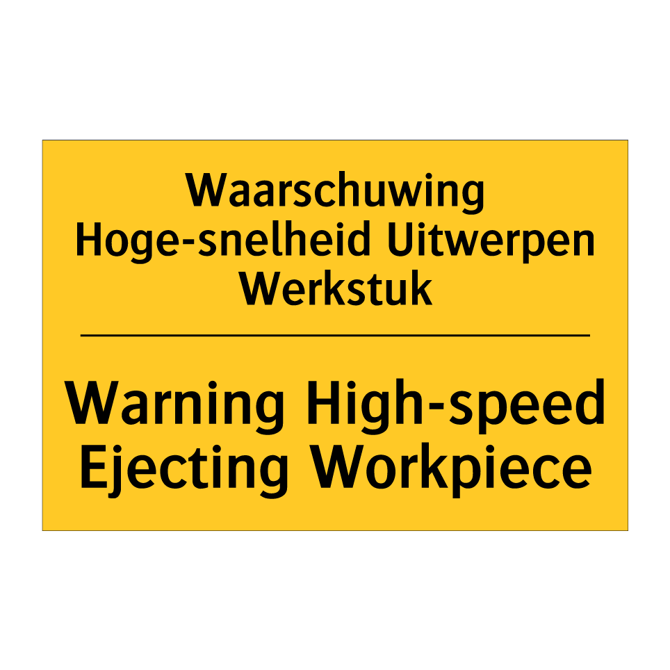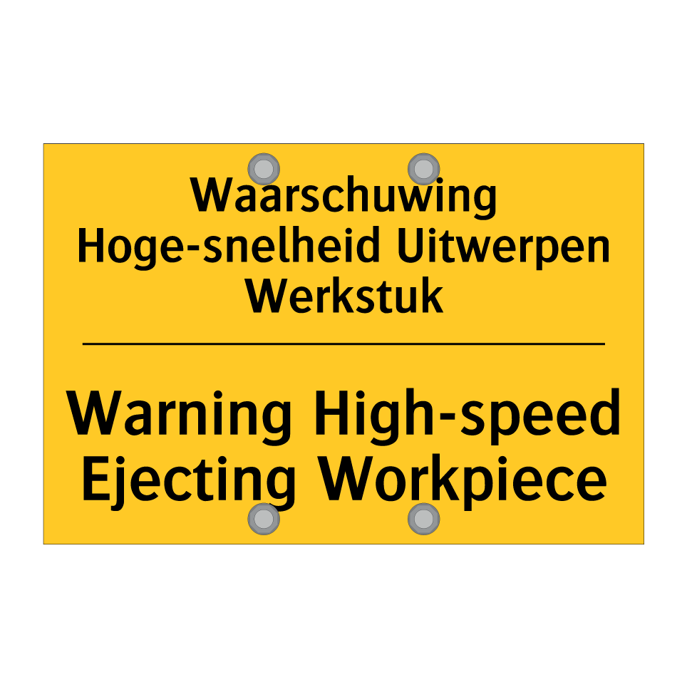 Waarschuwingsbord met de tekst Waarschuwing Hoge-snelheid Uitwerpen Werkstuk / Warning High-speed Ejecting Workpiece