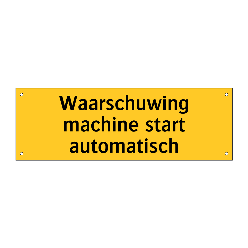Waarschuwingsbord met de tekst Waarschuwing machine start automatisch