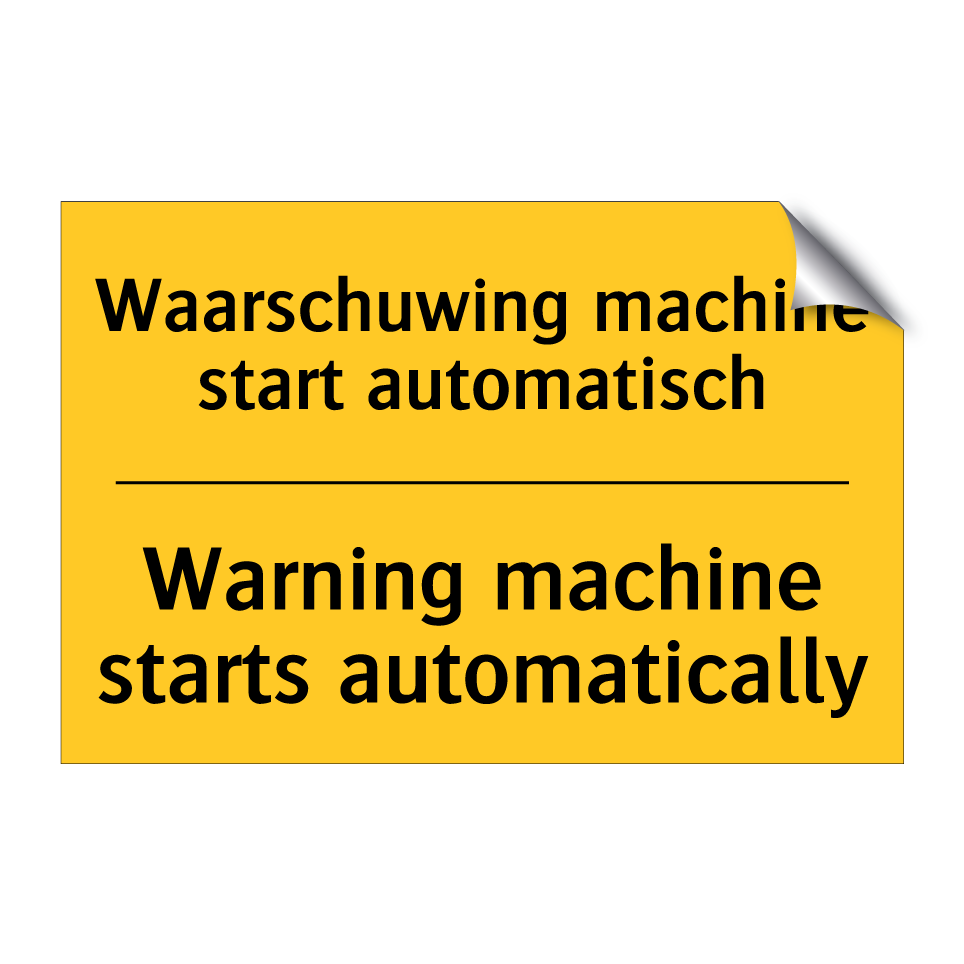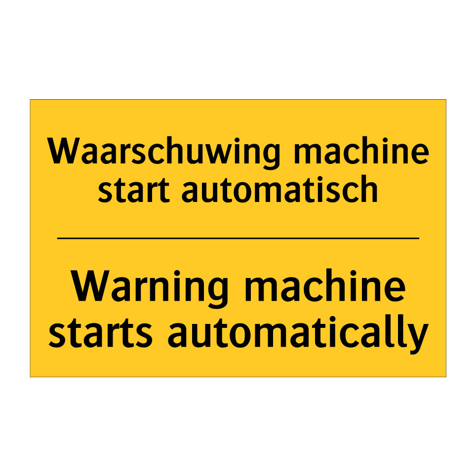 Waarschuwingsbord met de tekst Waarschuwing machine start automatisch / Warning machine starts automatically