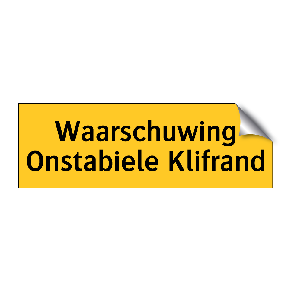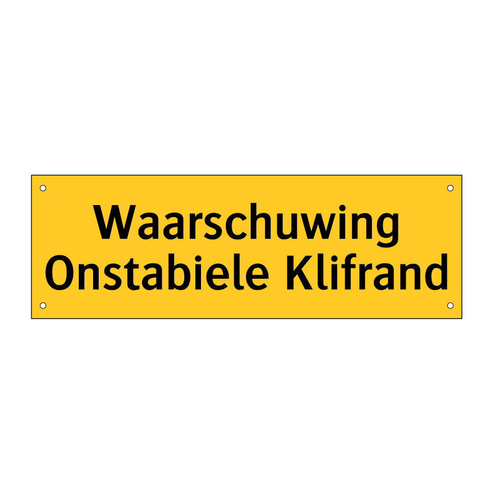 Waarschuwingsbord met de tekst Waarschuwing Onstabiele Klifrand