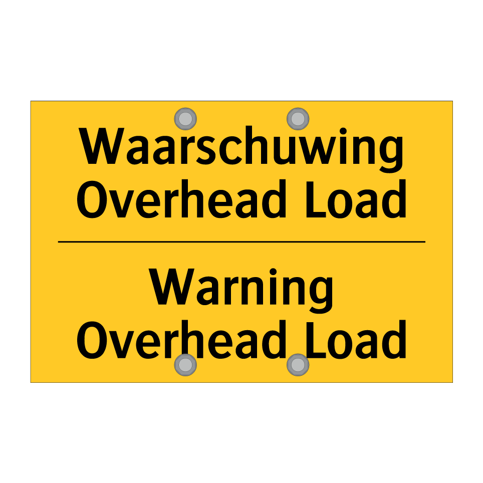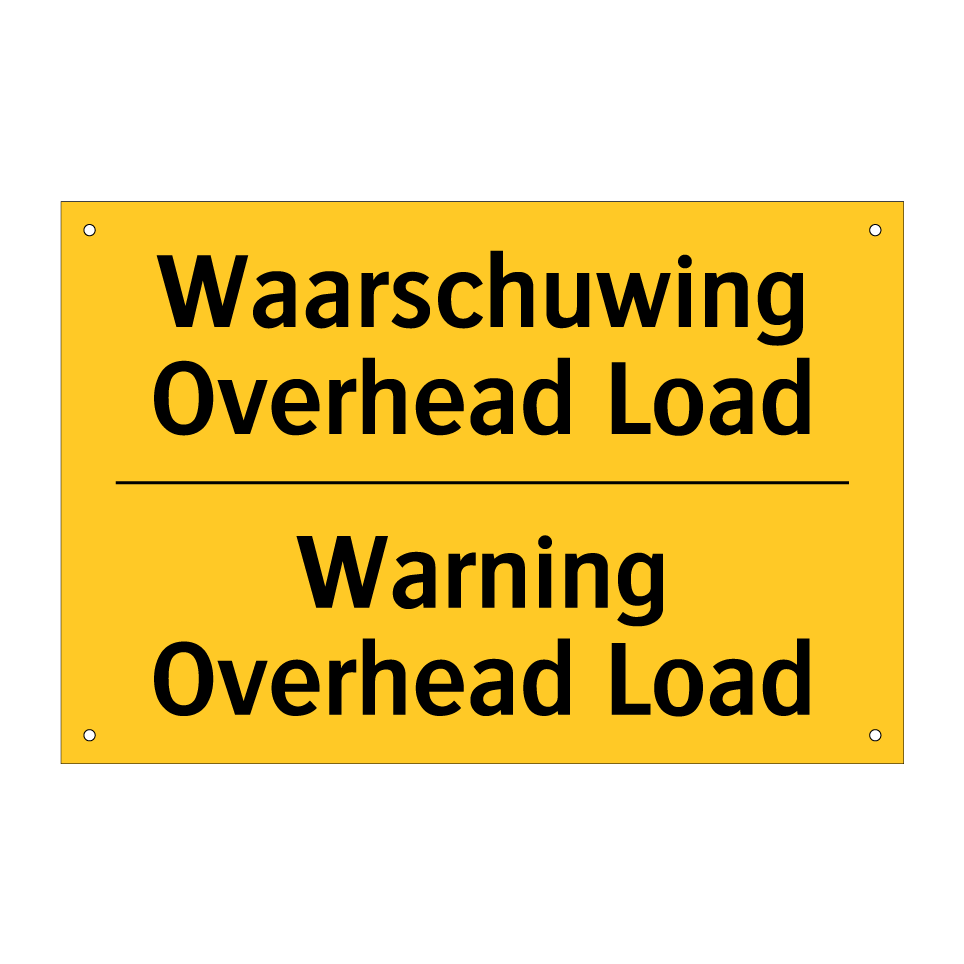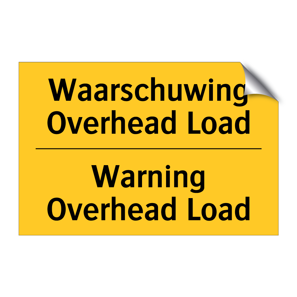 Waarschuwingsbord met de tekst Waarschuwing Overhead Load / Warning Overhead Load