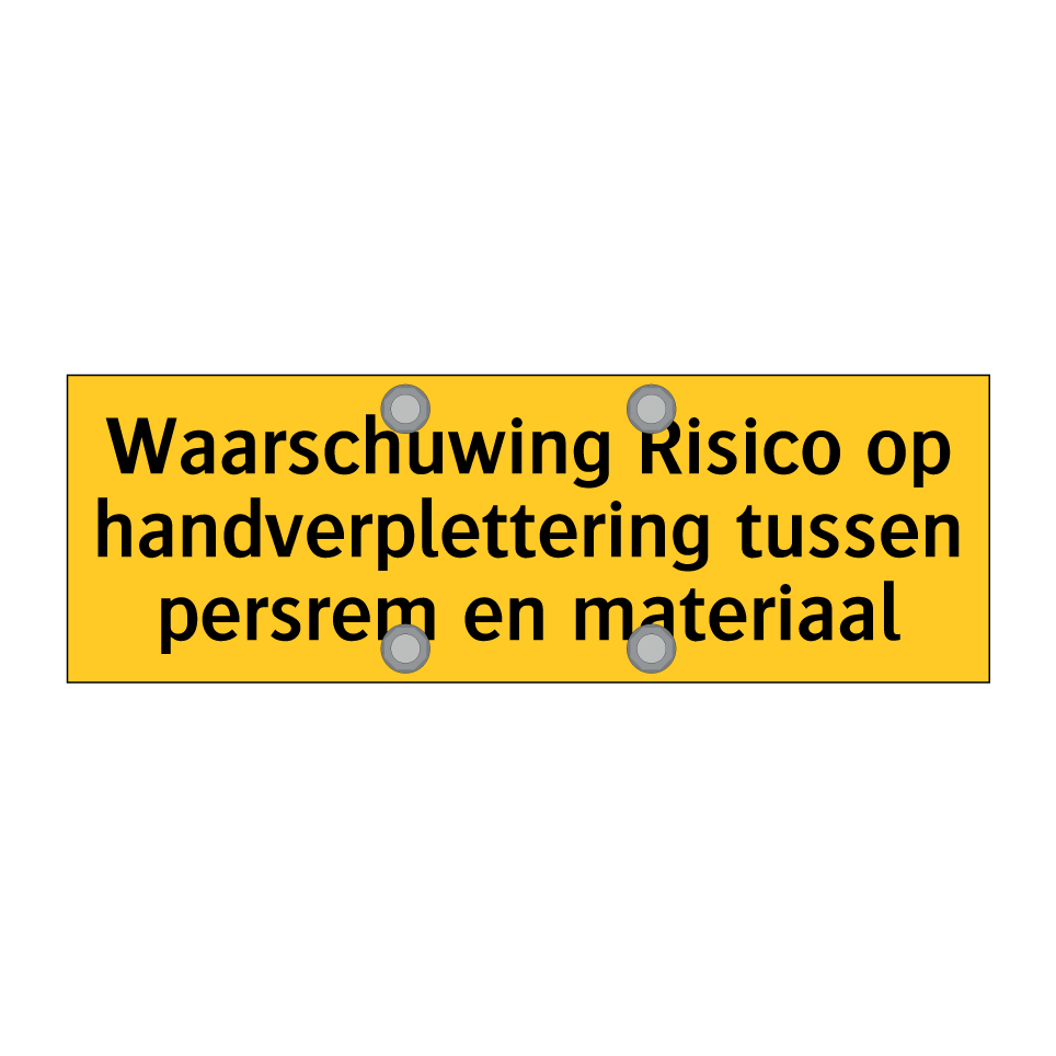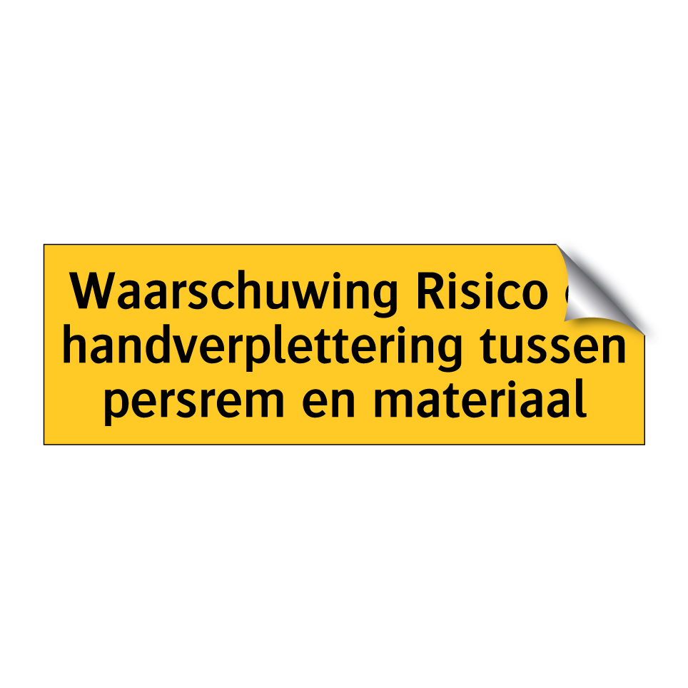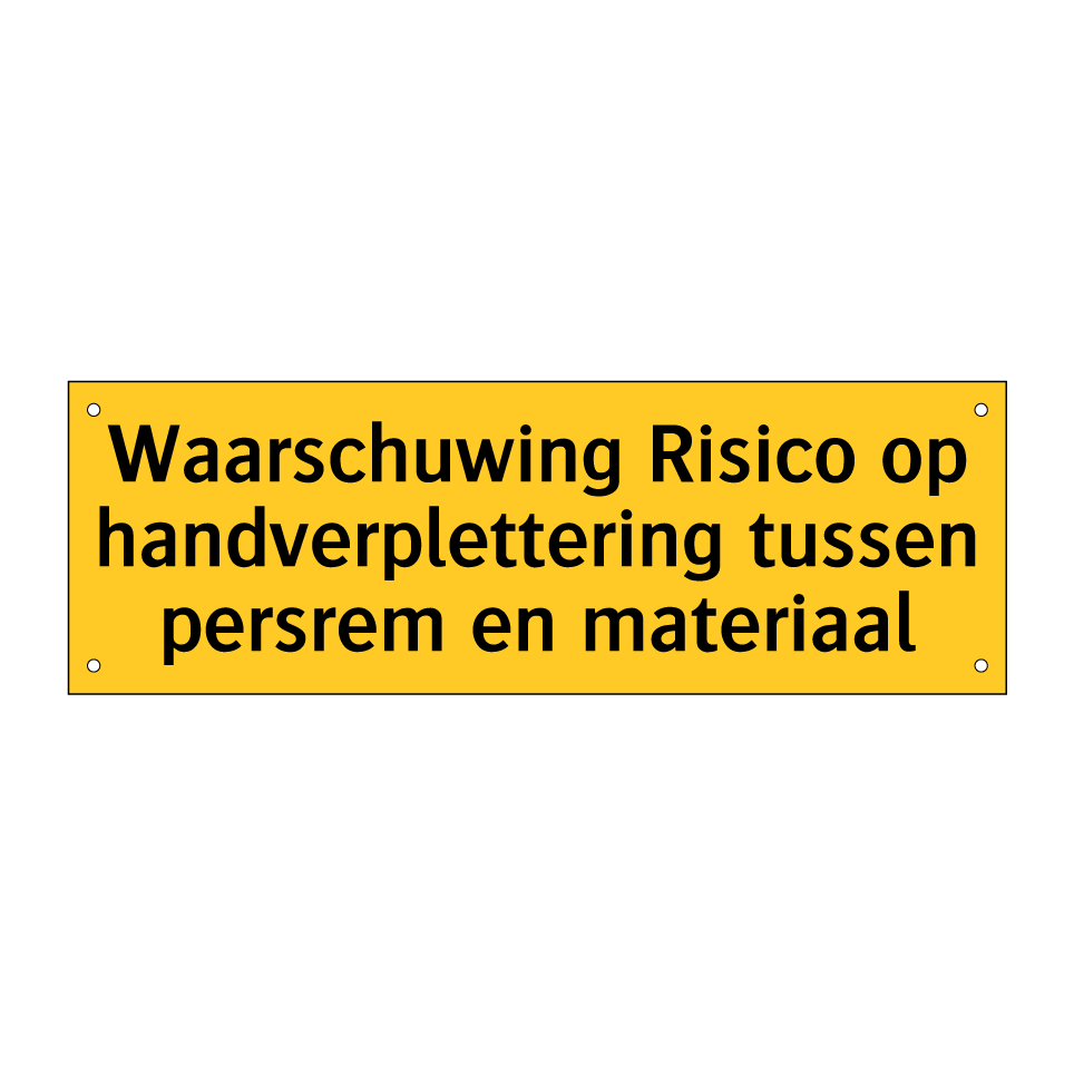 Waarschuwingsbord met de tekst Waarschuwing Risico op handverplettering tussen persrem en materiaal