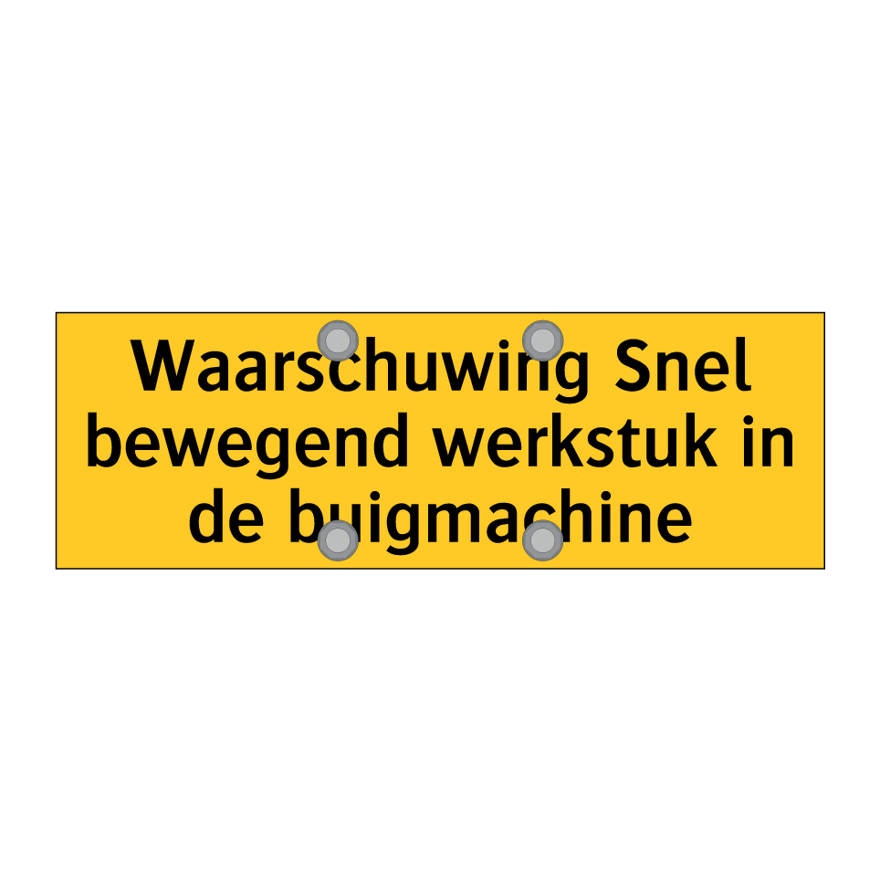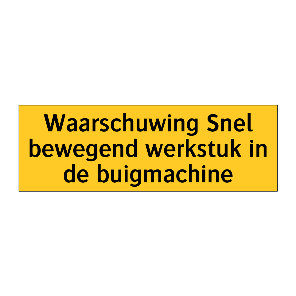 Waarschuwingsbord met de tekst Waarschuwing Snel bewegend werkstuk in de buigmachine