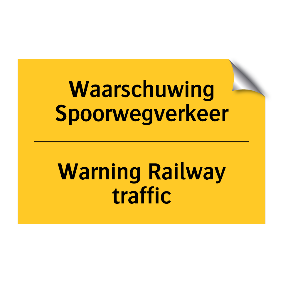 Waarschuwingsbord met de tekst Waarschuwing Spoorwegverkeer / Warning Railway traffic
