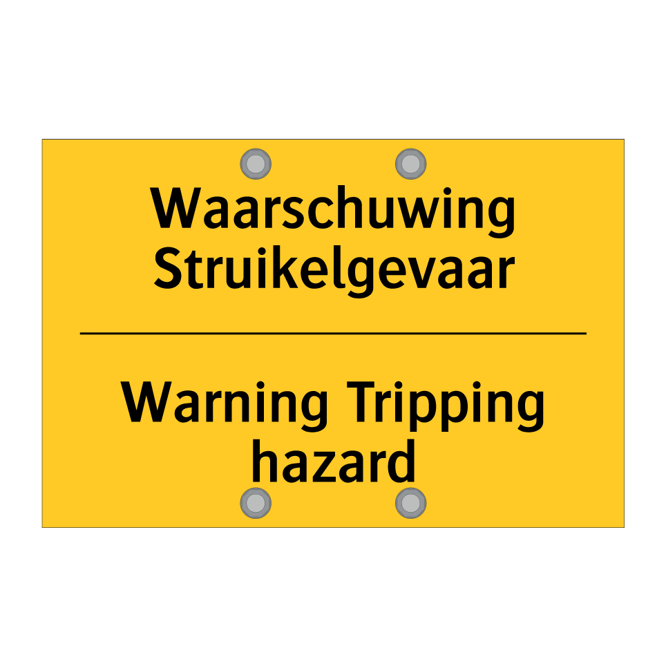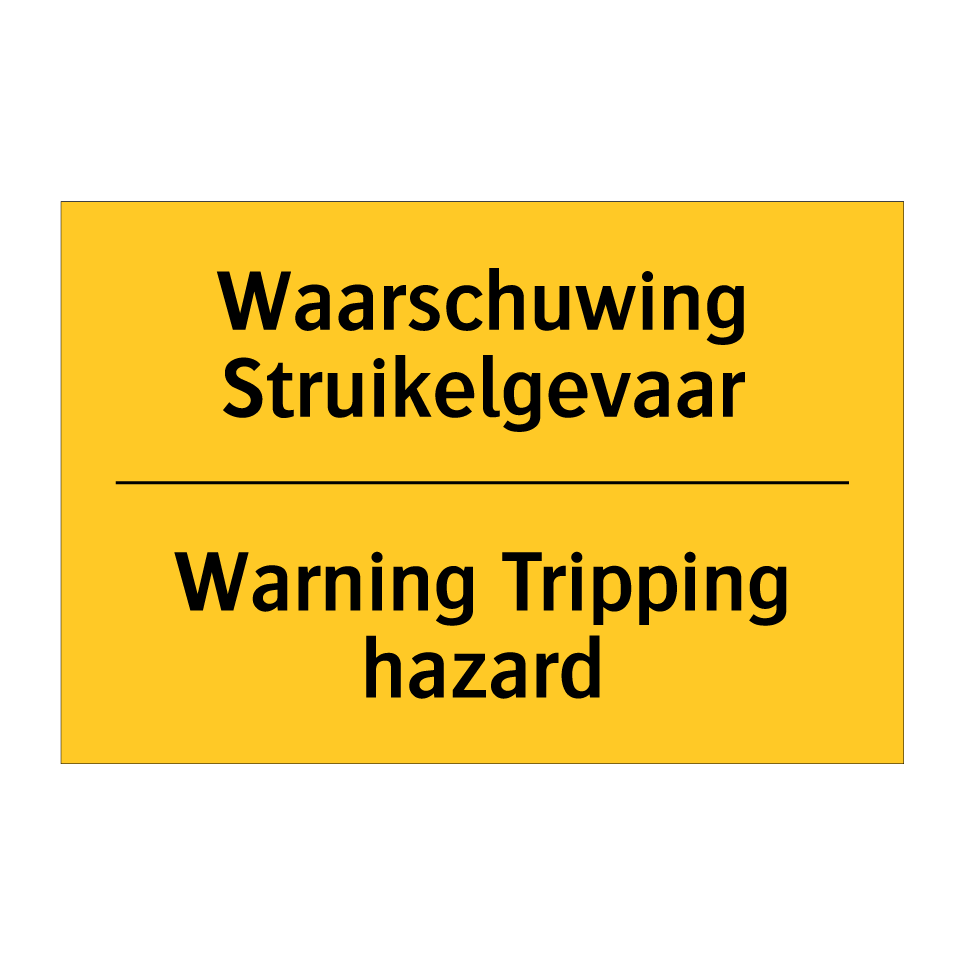 Waarschuwingsbord met de tekst Waarschuwing Struikelgevaar / Warning Tripping hazard