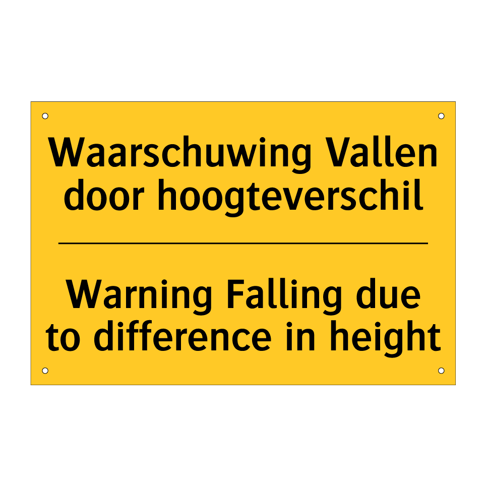 Waarschuwingsbord met de tekst Waarschuwing Vallen door hoogteverschil / Warning Falling due to difference in height