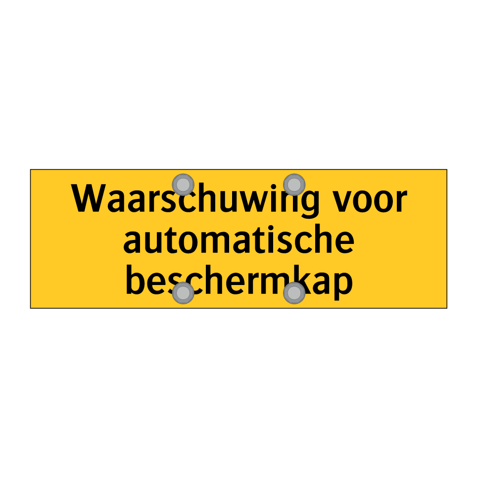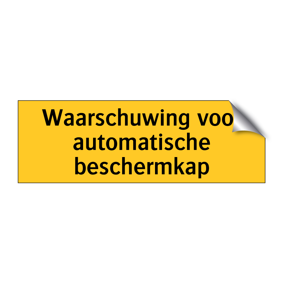 Waarschuwingsbord met de tekst Waarschuwing voor automatische beschermkap