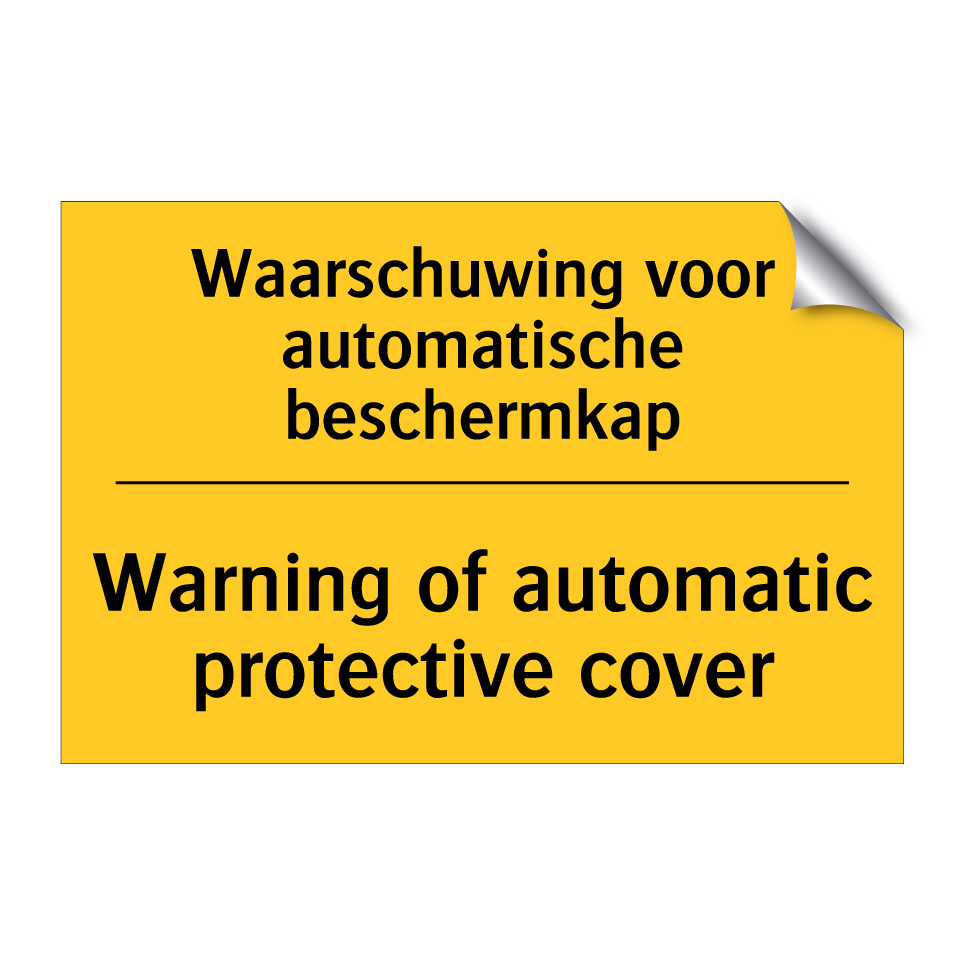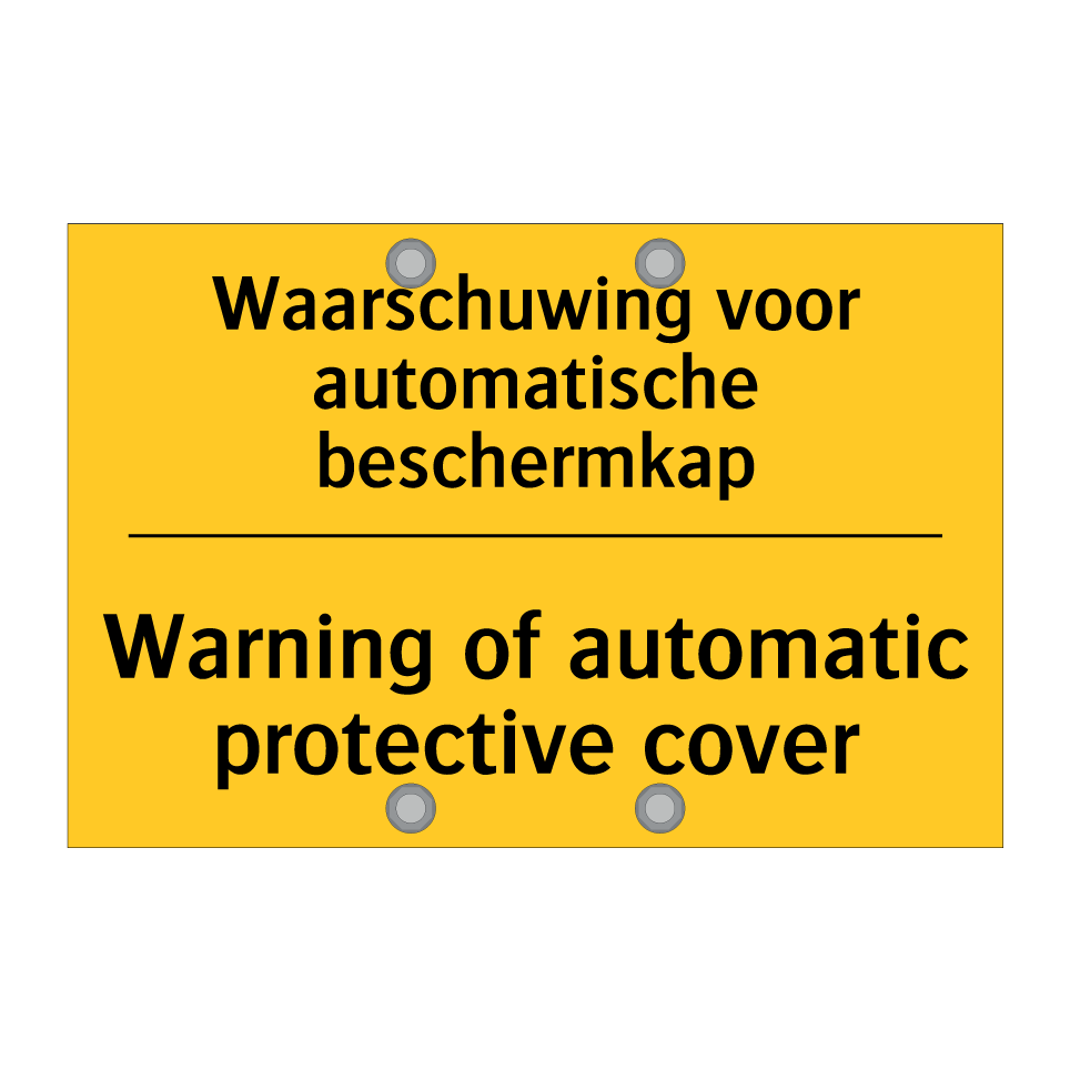 Waarschuwingsbord met de tekst Waarschuwing voor automatische beschermkap / Warning of automatic protective cover