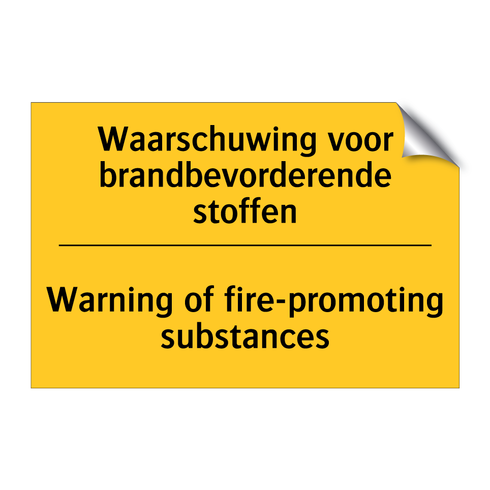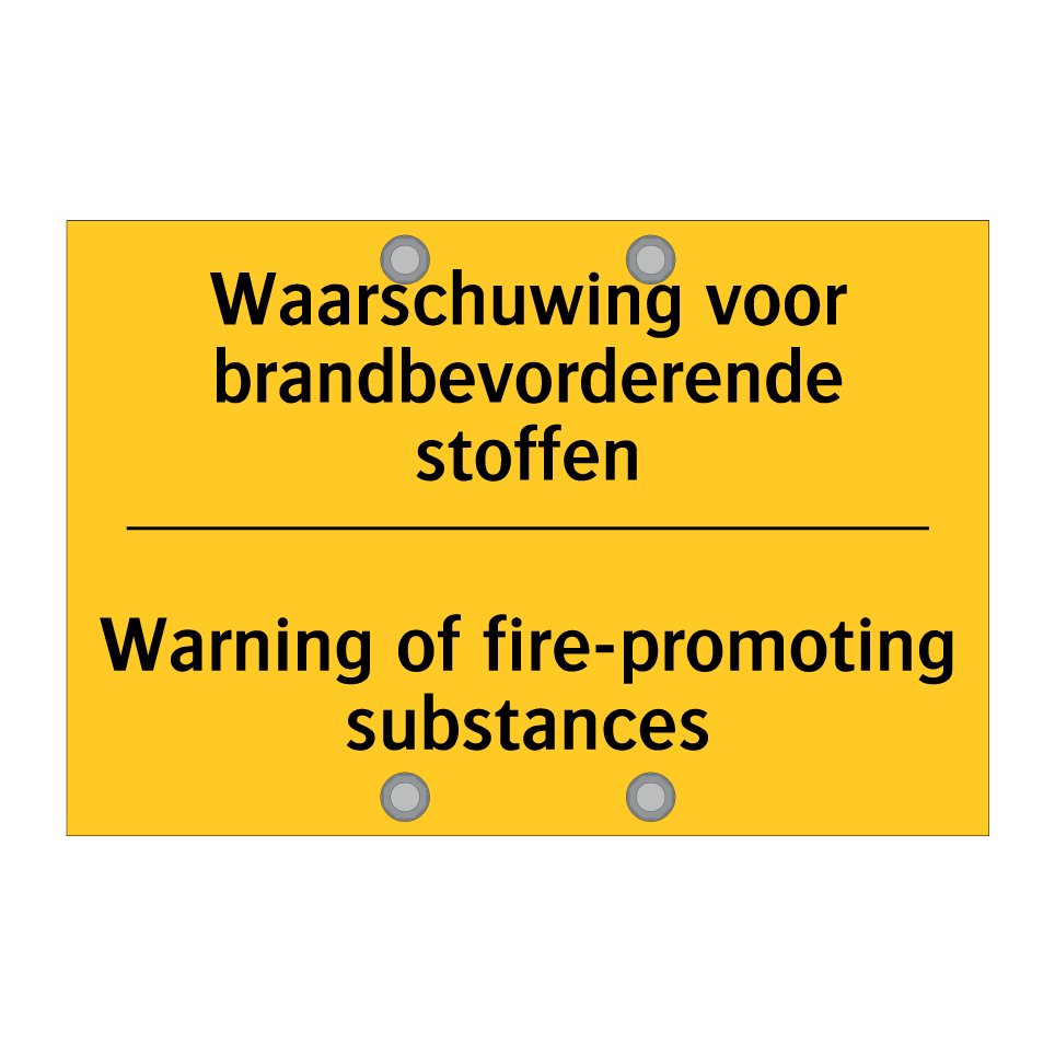 Waarschuwingsbord met de tekst Waarschuwing voor brandbevorderende stoffen / Warning of fire-promoting substances