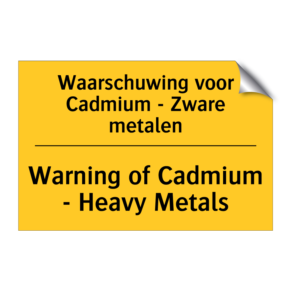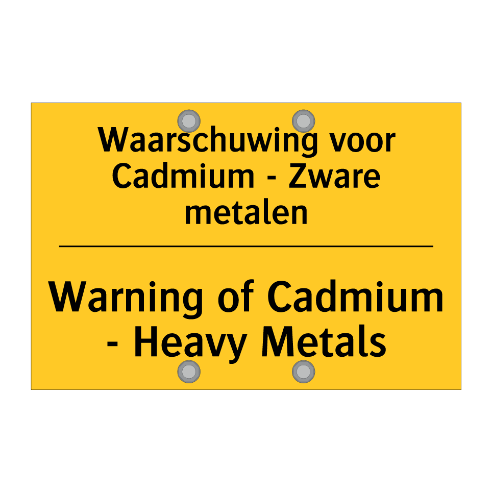 Waarschuwingsbord met de tekst Waarschuwing voor Cadmium - Zware metalen / Warning of Cadmium - Heavy Metals
