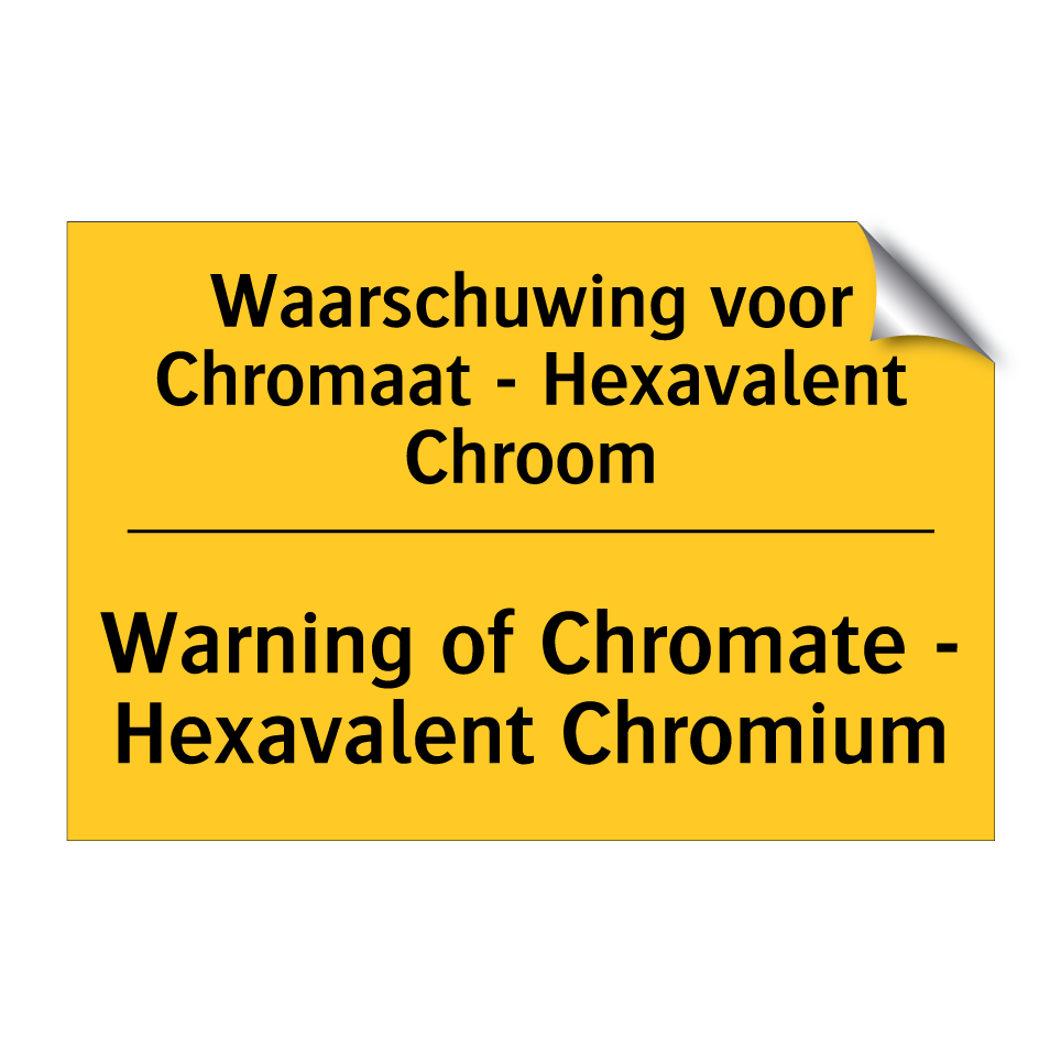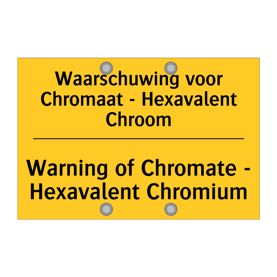 Waarschuwingsbord met de tekst Waarschuwing voor Chromaat - Hexavalent Chroom / Warning of Chromate - Hexavalent Chromium