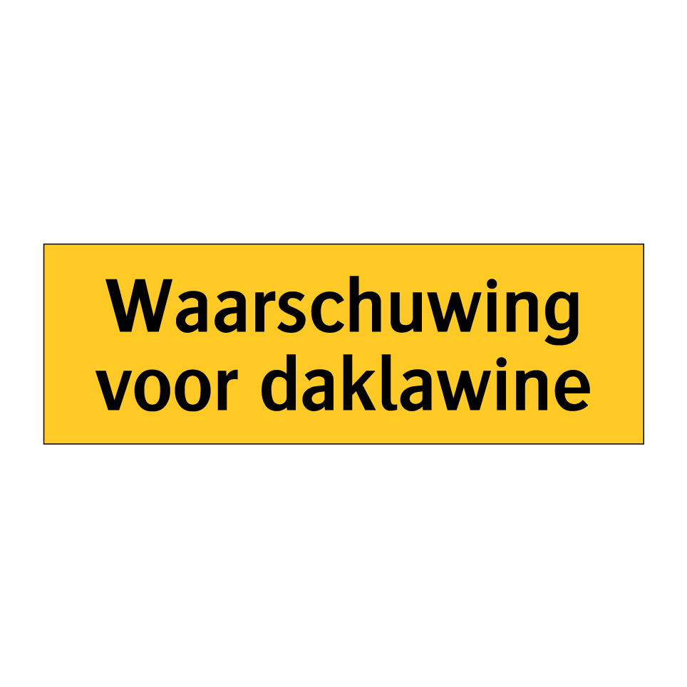 Deze waarschuwingsbord is essentieel voor het signaleren van potentiële gevaren van daklawines. Ideaal voor gebruik in gebieden met zware sneeuwval, zoals skigebieden, bergachtige regio's en gebouwen met schuine daken. Plaats deze bord op goed zichtbare locaties zoals ingangen, parkeerplaatsen en wandelpaden om voorbijgangers te waarschuwen voor het risico van vallende sneeuw en ijs. Door de opvallende gele achtergrond en zwarte tekst trekt deze waarschuwingsbord onmiddellijk de aandacht, waardoor de veiligheid van iedereen in de omgeving wordt verhoogd. Zorg ervoor dat bezoekers en werknemers zich bewust zijn van de gevaren en neem preventieve maatregelen met deze duidelijke en effectieve waarschuwing.