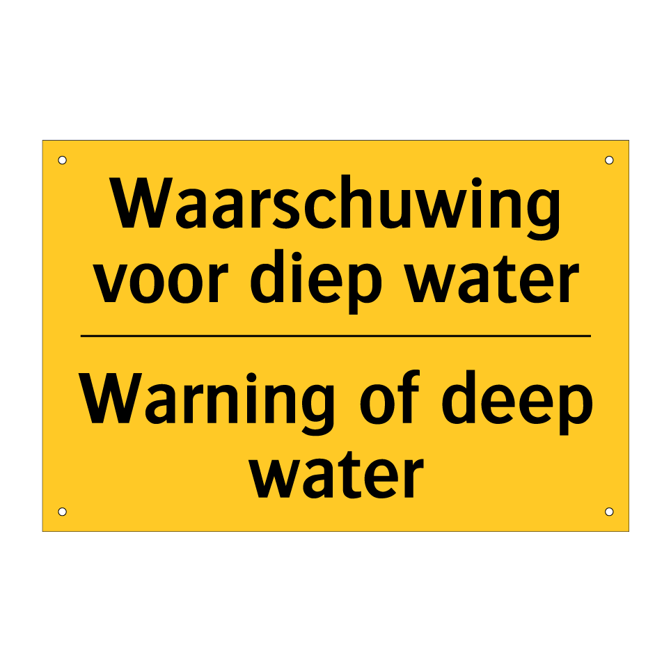 Waarschuwingsbord met de tekst Waarschuwing voor diep water / Warning of deep water