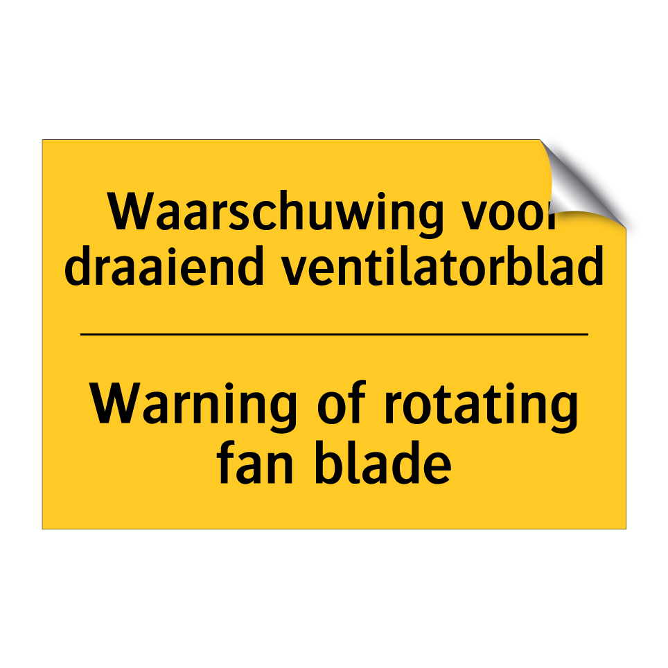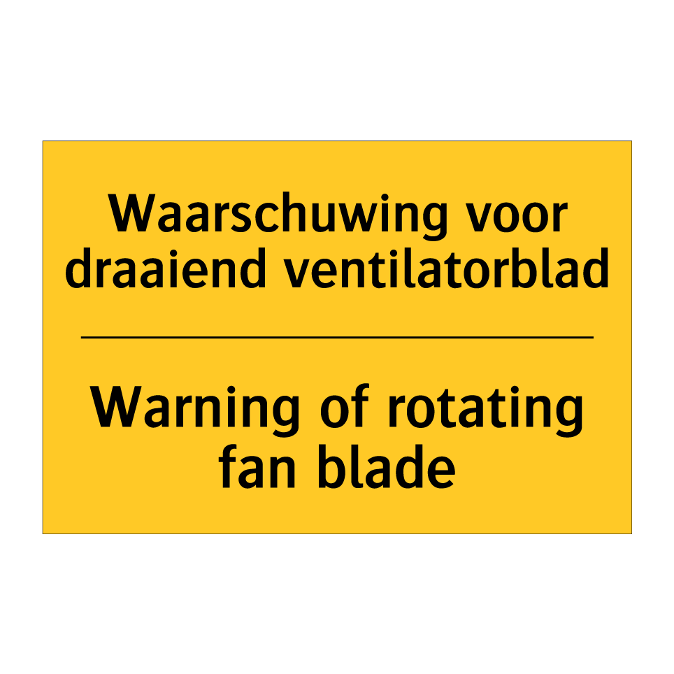 Waarschuwingsbord met de tekst Waarschuwing voor draaiend ventilatorblad / Warning of rotating fan blade