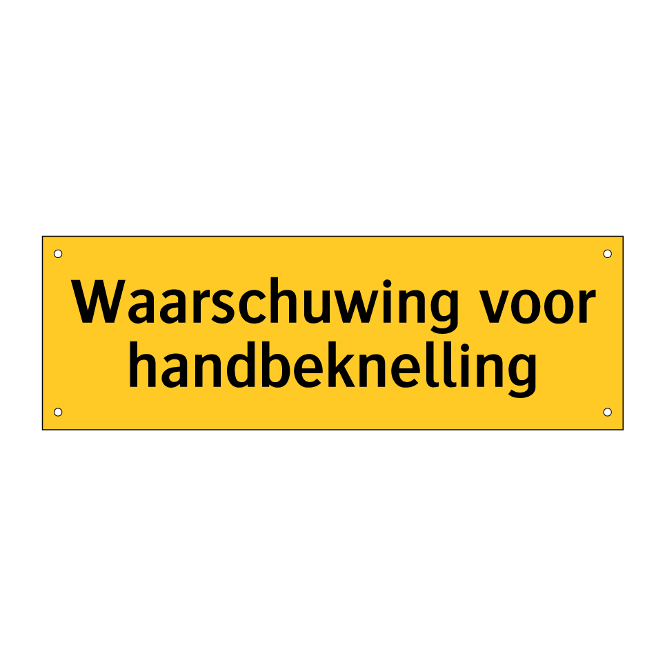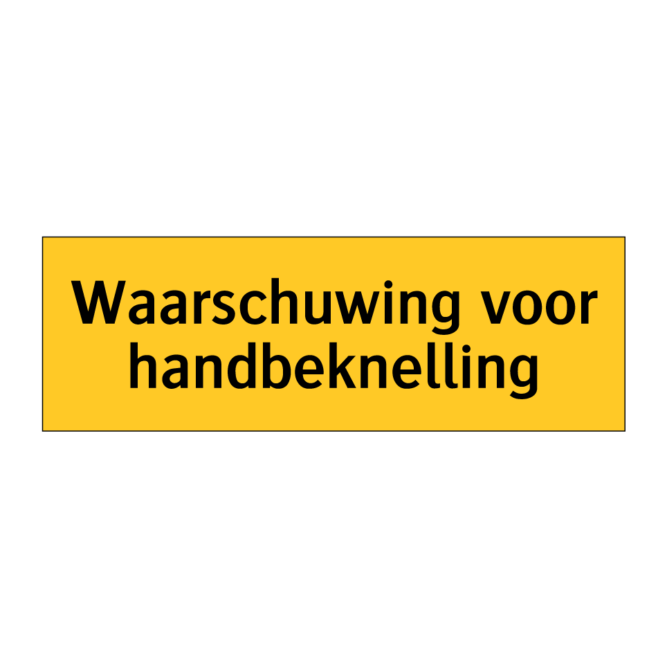 Waarschuwingsbord met de tekst Waarschuwing voor handbeknelling