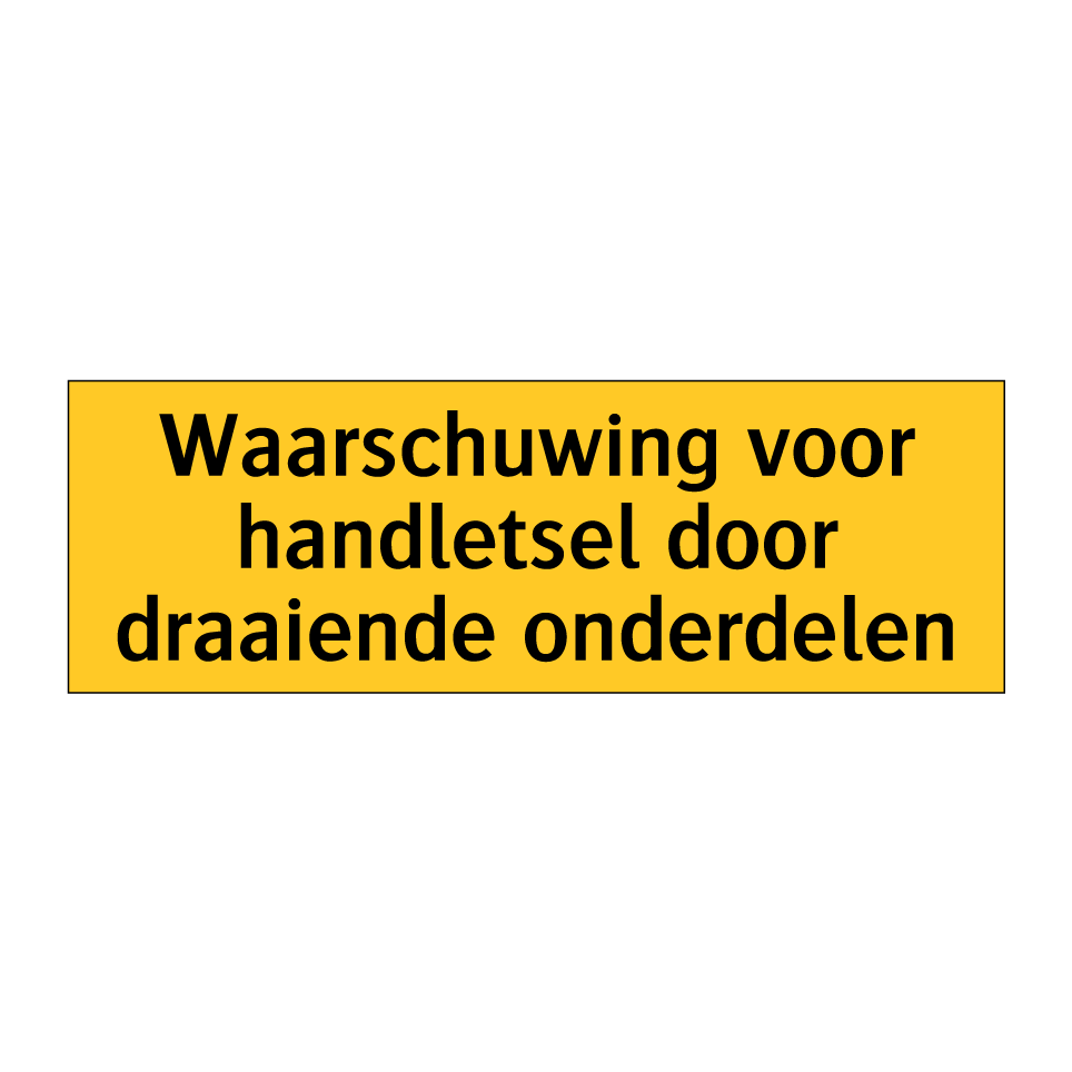 Waarschuwingsbord met de tekst Waarschuwing voor handletsel door draaiende onderdelen