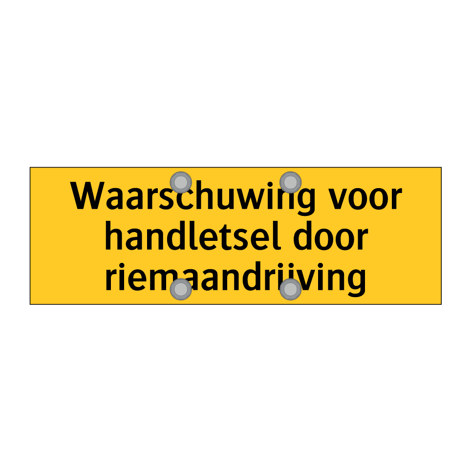 Waarschuwingsbord met de tekst Waarschuwing voor handletsel door riemaandrijving