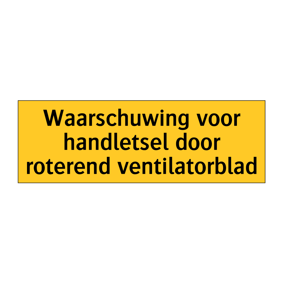 Waarschuwingsbord met de tekst Waarschuwing voor handletsel door roterend ventilatorblad