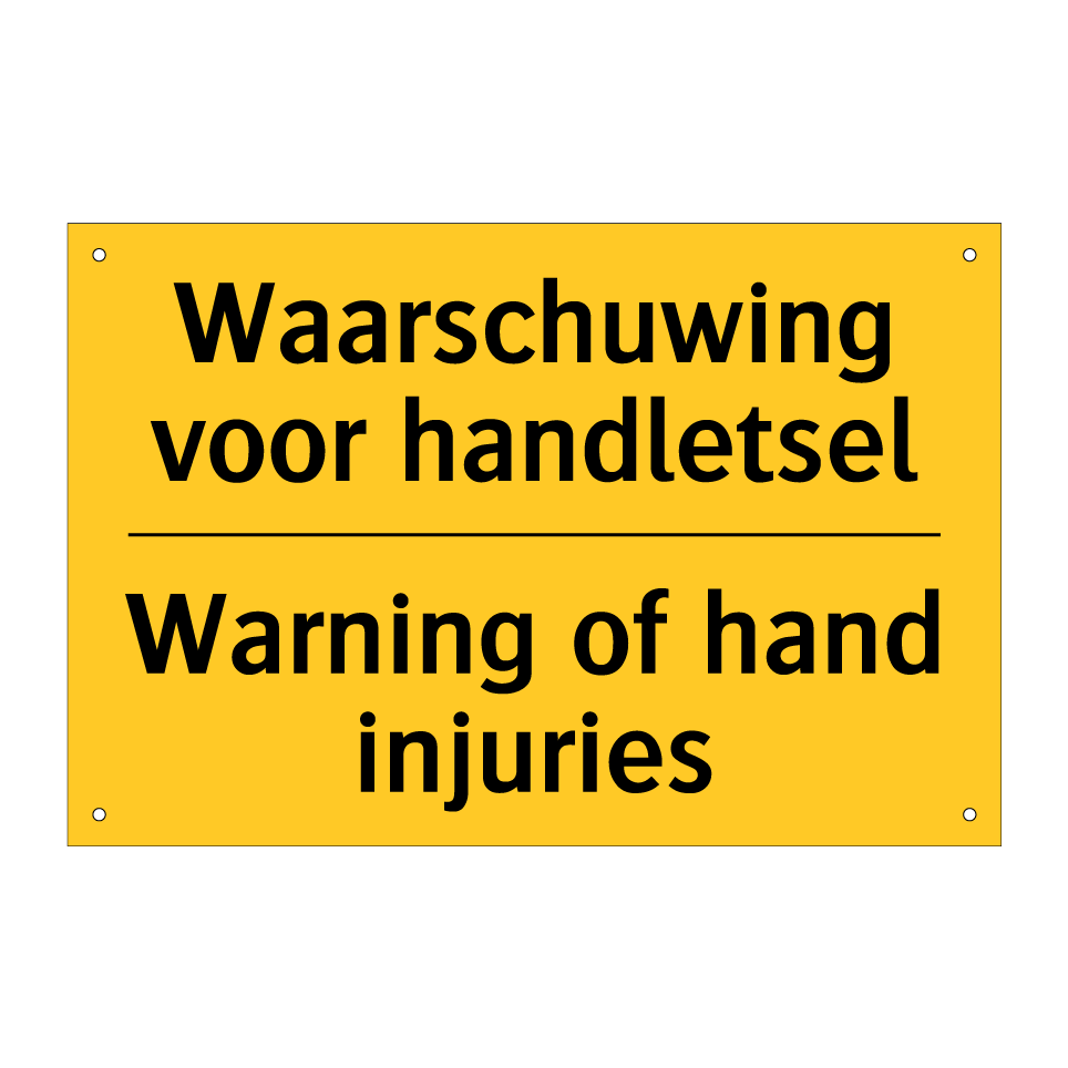 Waarschuwingsbord met de tekst Waarschuwing voor handletsel / Warning of hand injuries