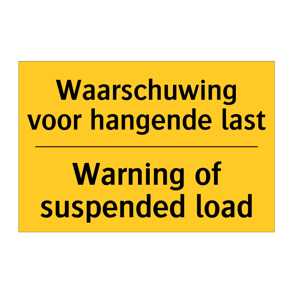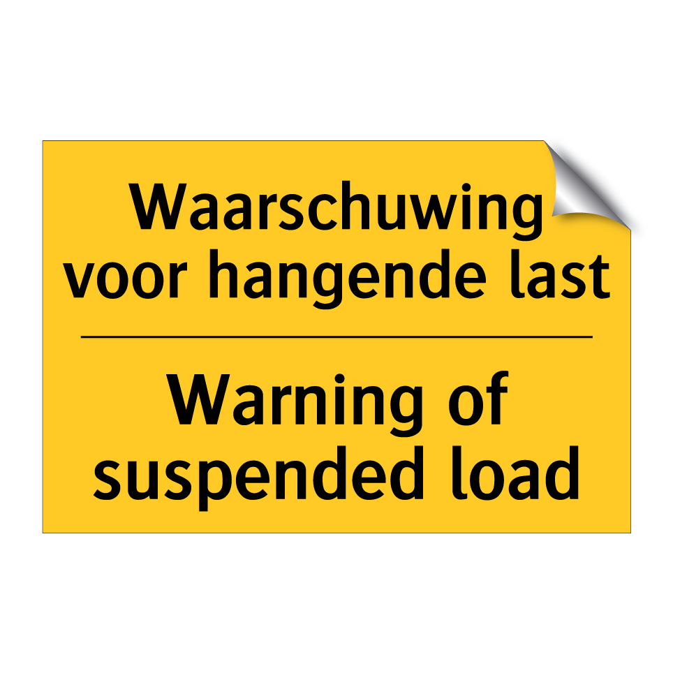 Waarschuwingsbord met de tekst Waarschuwing voor hangende last / Warning of suspended load