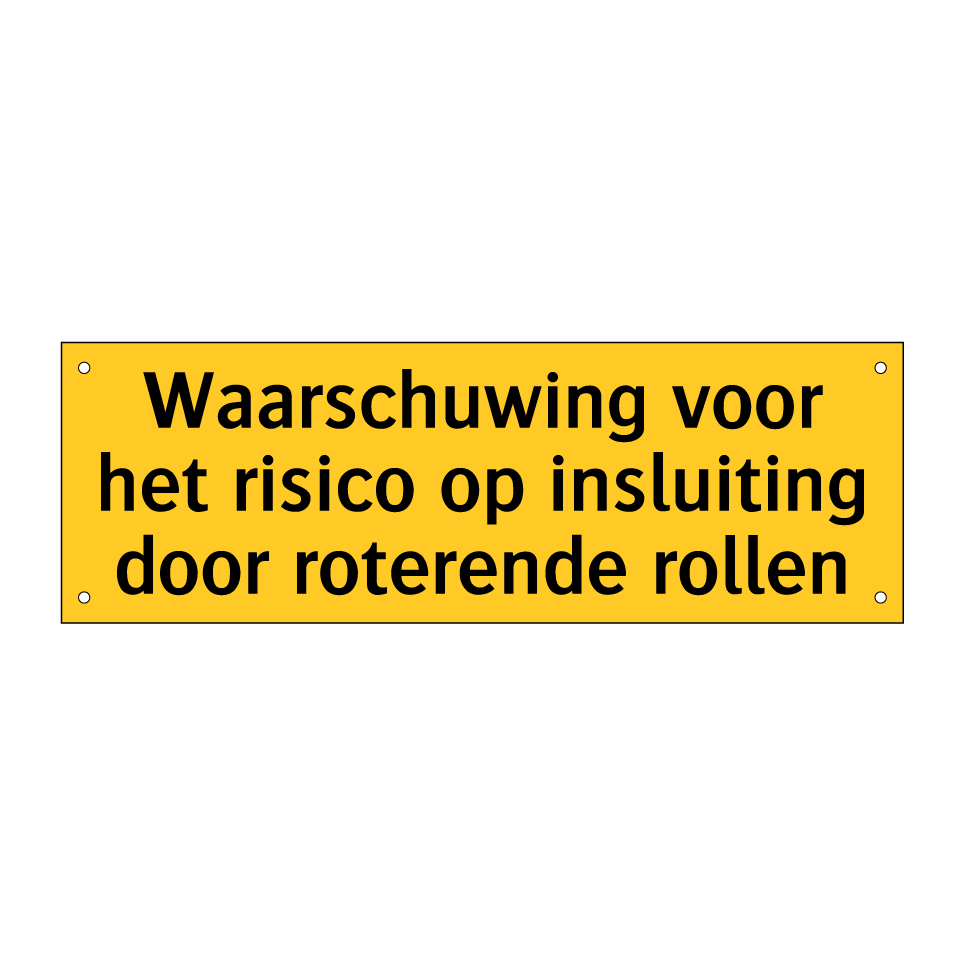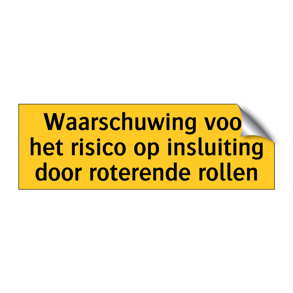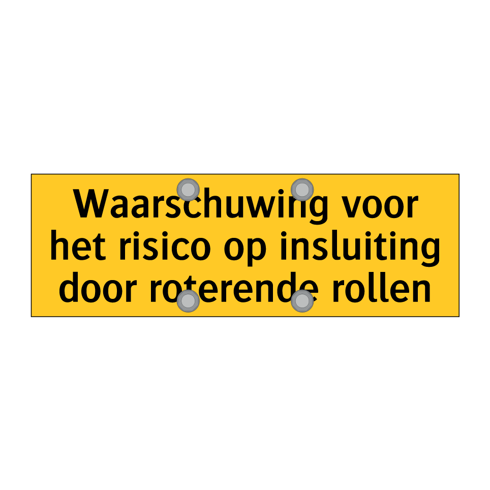 Waarschuwingsbord met de tekst Waarschuwing voor het risico op insluiting door roterende rollen