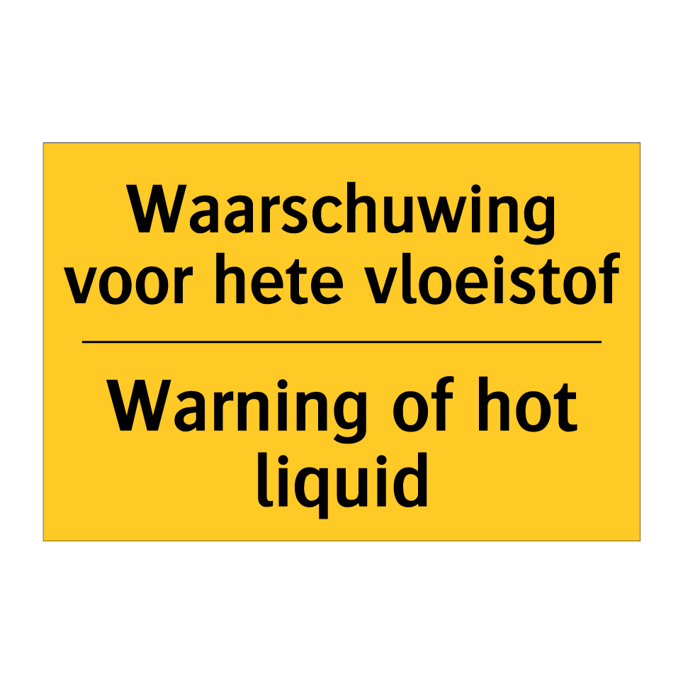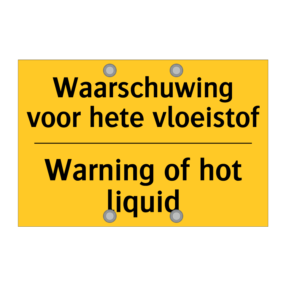 Waarschuwingsbord met de tekst Waarschuwing voor hete vloeistof / Warning of hot liquid