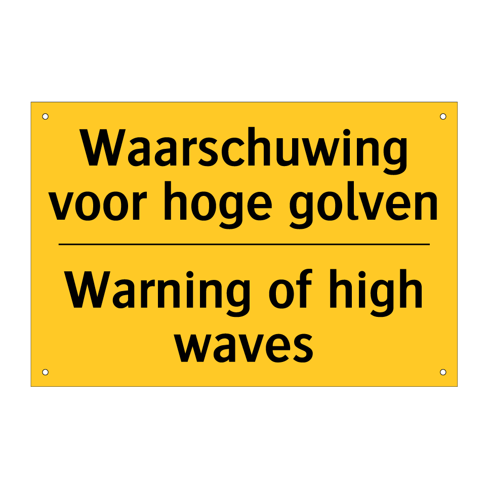 Waarschuwingsbord met de tekst Waarschuwing voor hoge golven / Warning of high waves