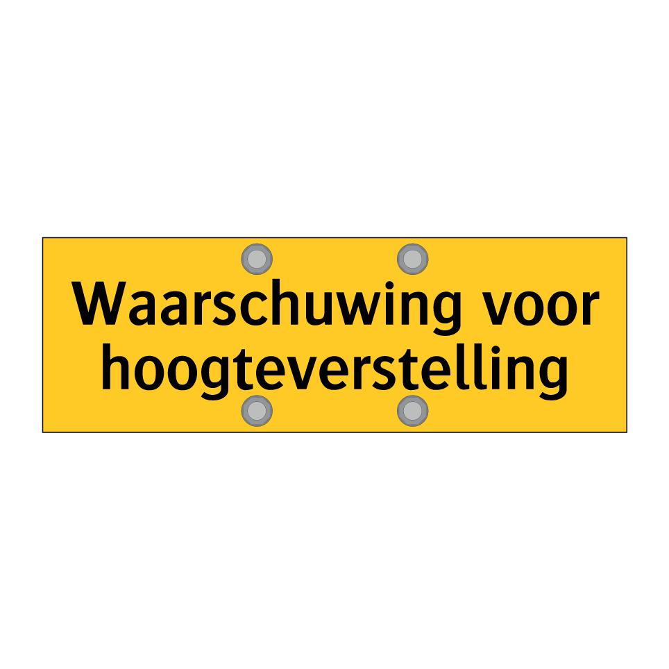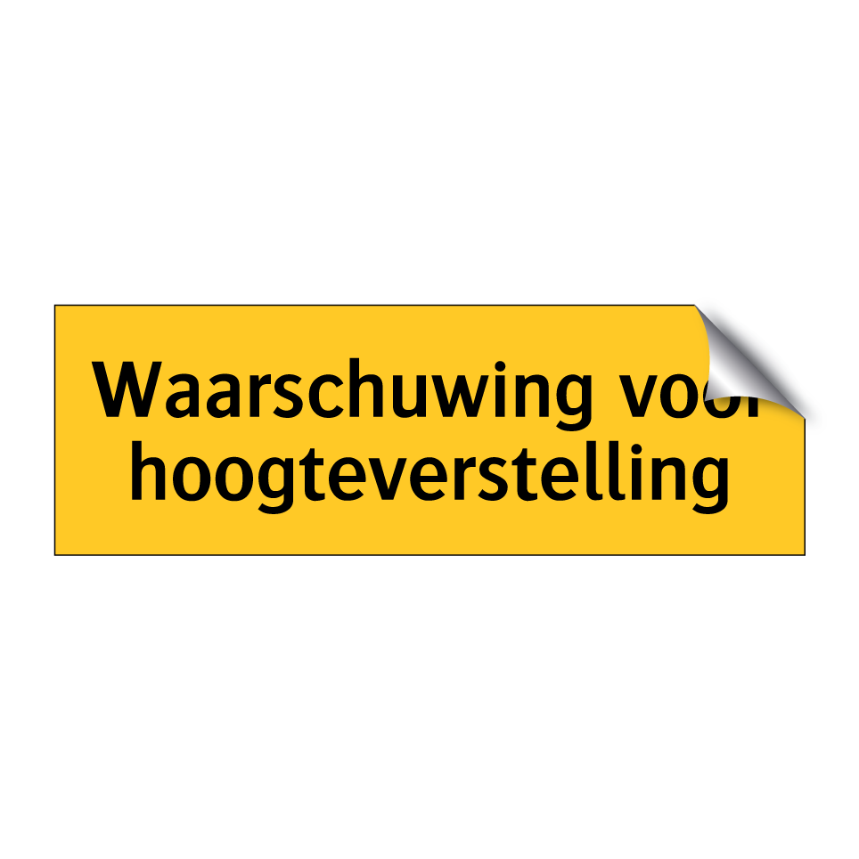 Waarschuwingsbord met de tekst Waarschuwing voor hoogteverstelling