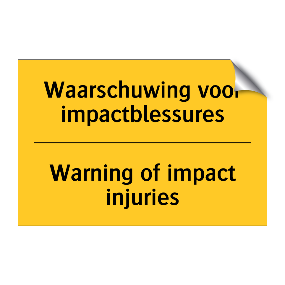 Waarschuwingsbord met de tekst Waarschuwing voor impactblessures / Warning of impact injuries