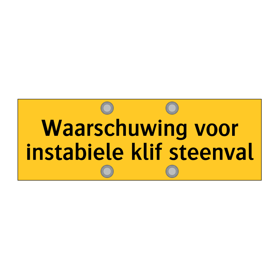 Waarschuwingsbord met de tekst Waarschuwing voor instabiele klif steenval