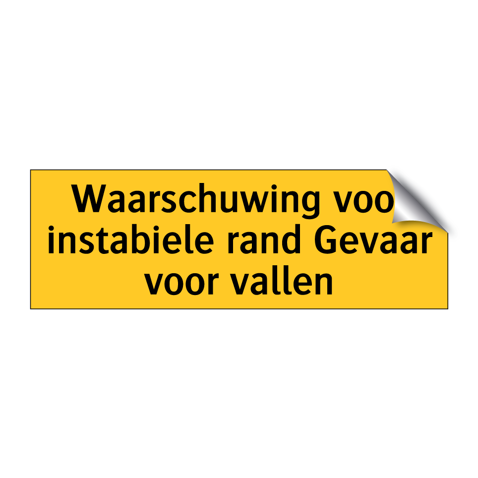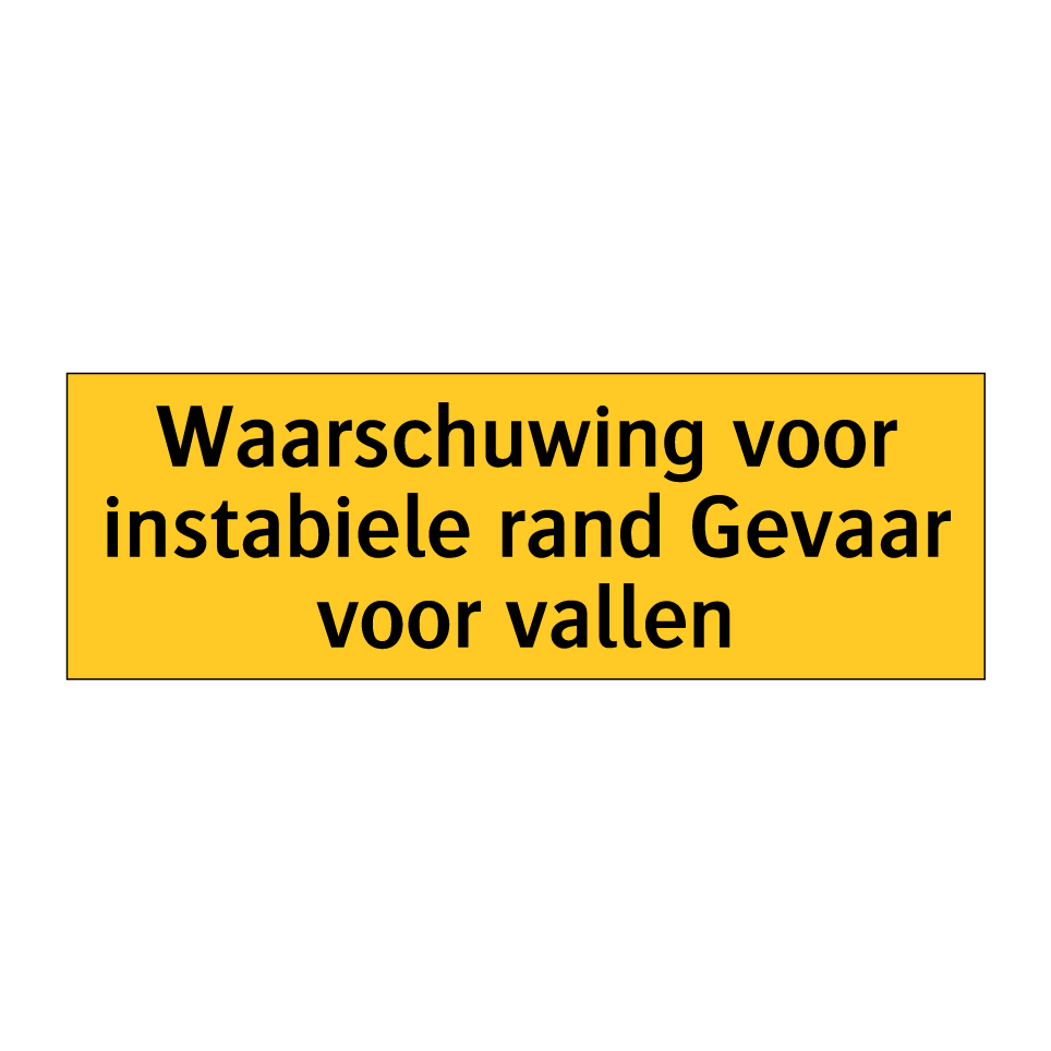 Waarschuwingsbord met de tekst Waarschuwing voor instabiele rand Gevaar voor vallen