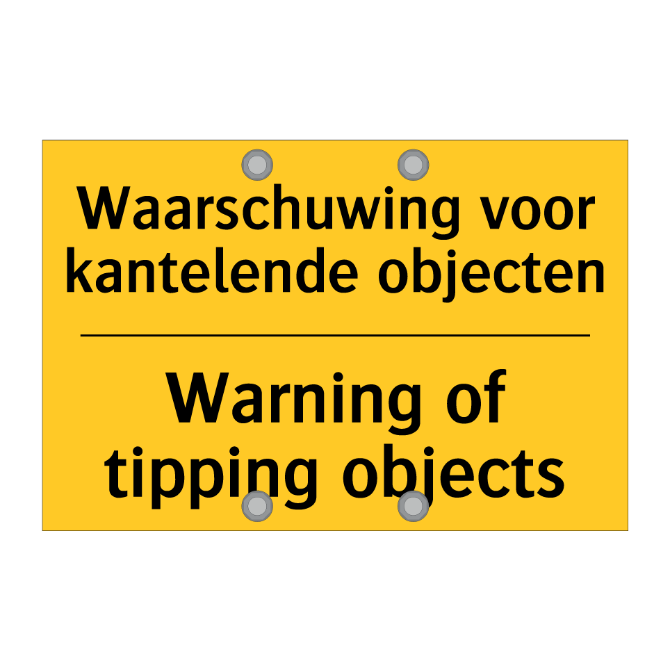 Waarschuwingsbord met de tekst Waarschuwing voor kantelende objecten / Warning of tipping objects