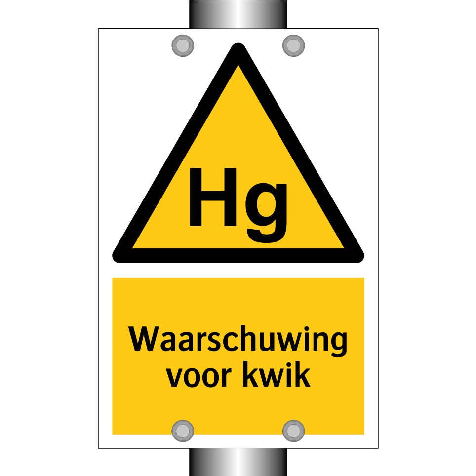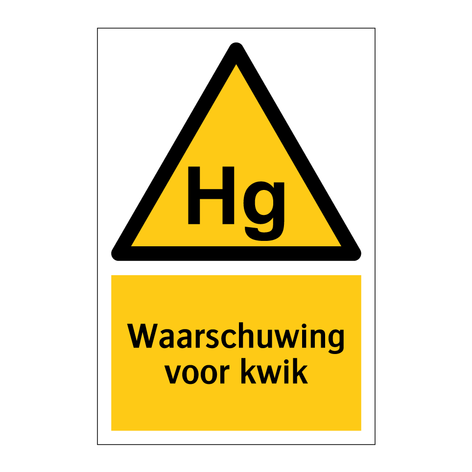 Waarschuwingsbord met de tekst Waarschuwing voor kwik