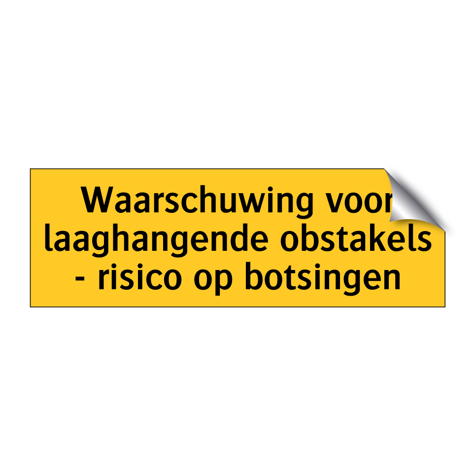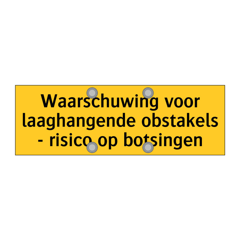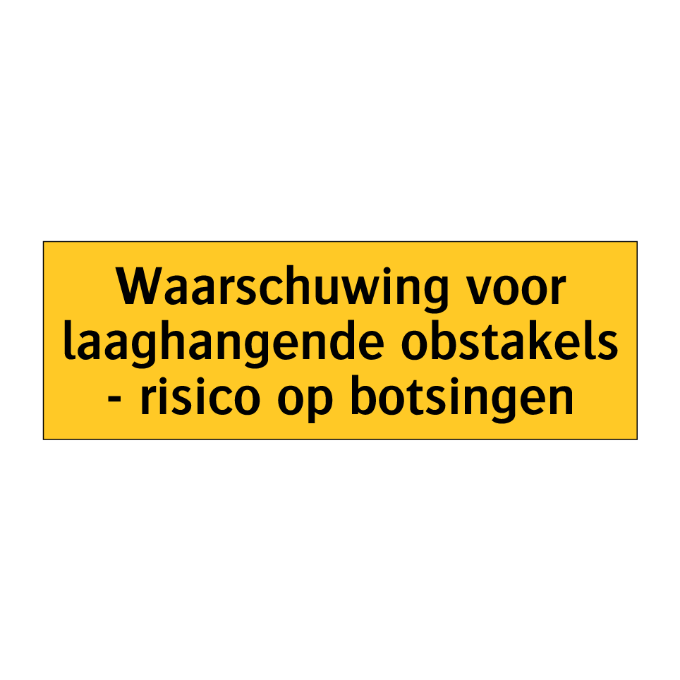 Waarschuwingsbord met de tekst Waarschuwing voor laaghangende obstakels - risico op botsingen