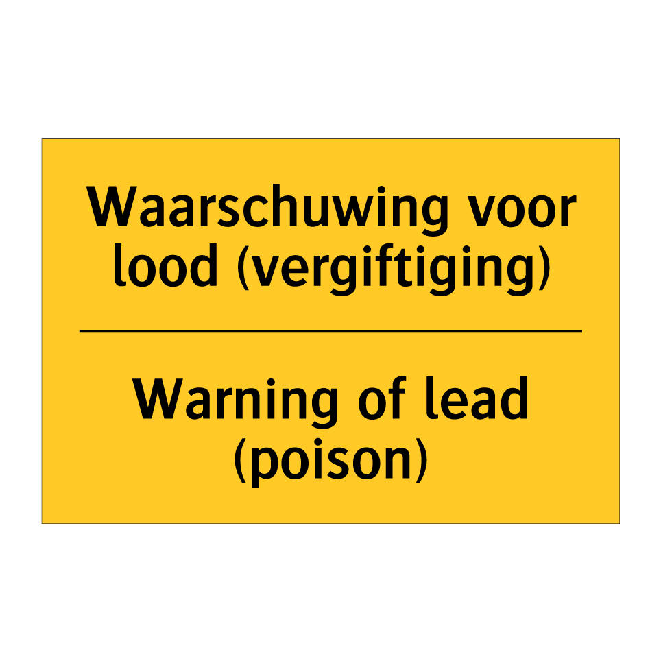 Waarschuwingsbord met de tekst Waarschuwing voor lood (vergiftiging) / Warning of lead (poison)
