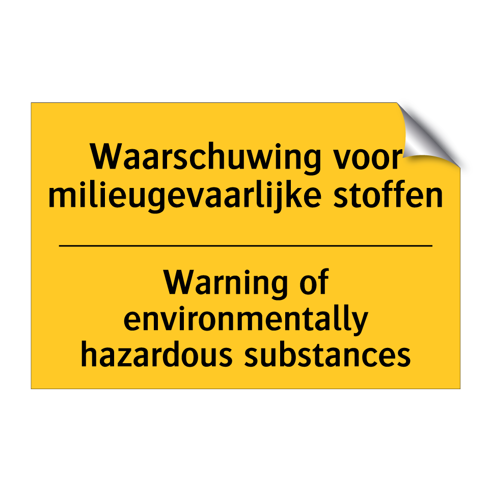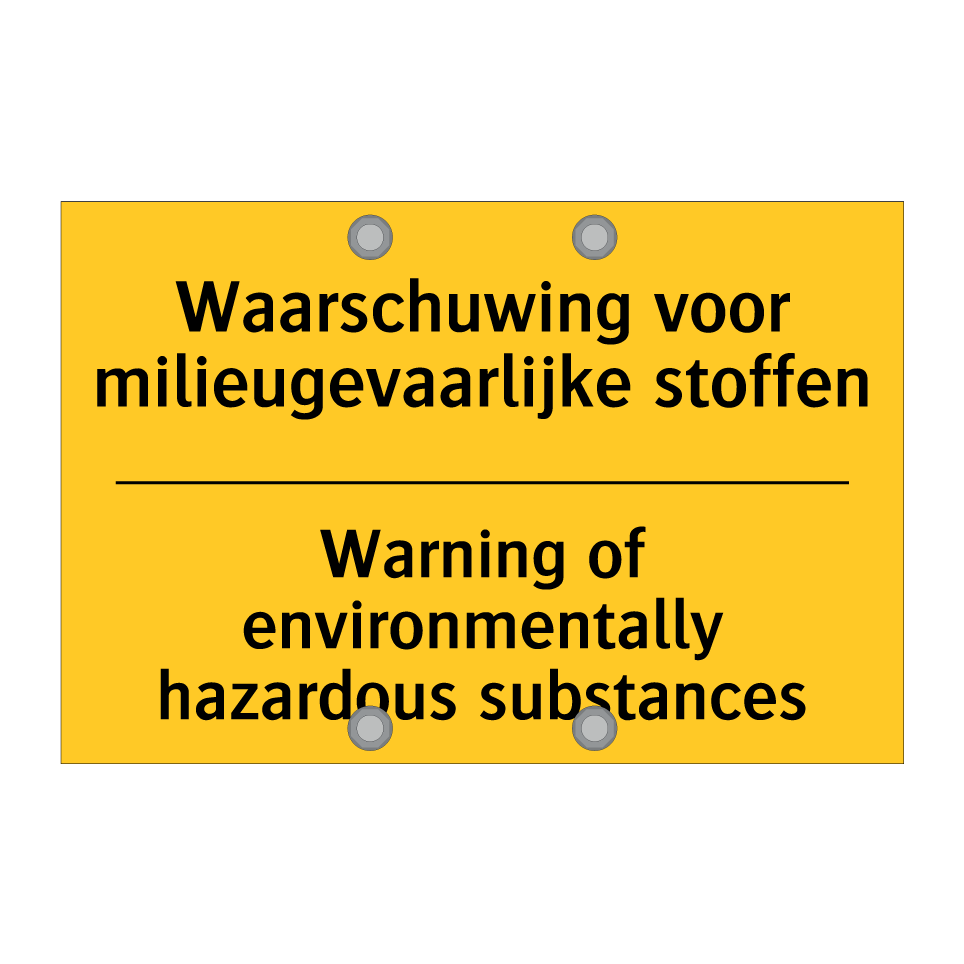Waarschuwingsbord met de tekst Waarschuwing voor milieugevaarlijke stoffen / Warning of environmentally hazardous substances