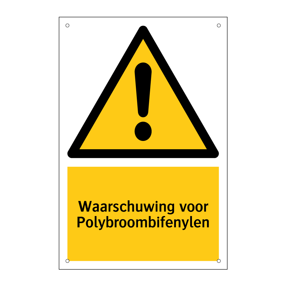 Waarschuwingsbord met de tekst Waarschuwing voor Polybroombifenylen