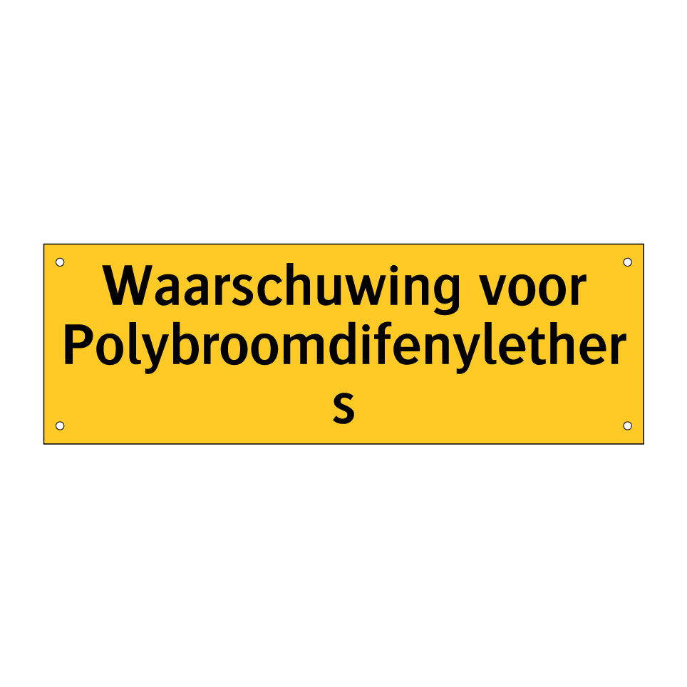 Waarschuwingsbord met de tekst Waarschuwing voor Polybroomdifenylethers