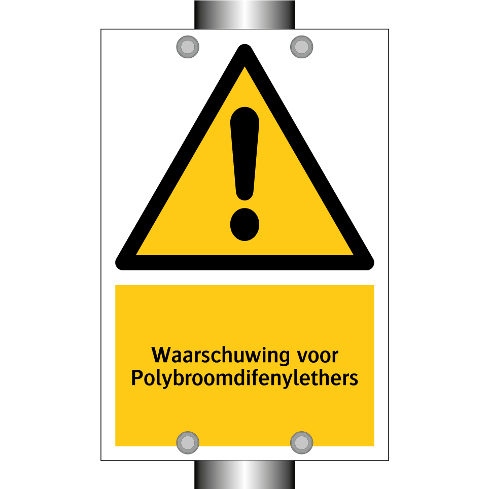 Waarschuwingsbord met de tekst Waarschuwing voor Polybroomdifenylethers