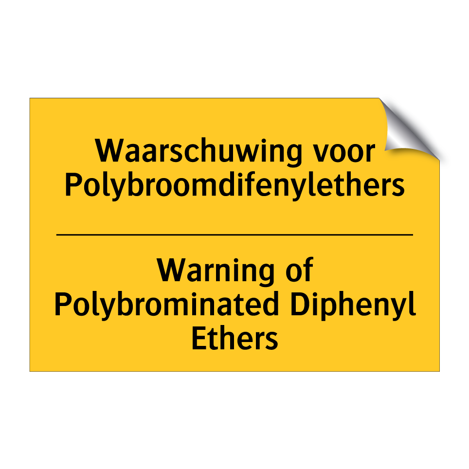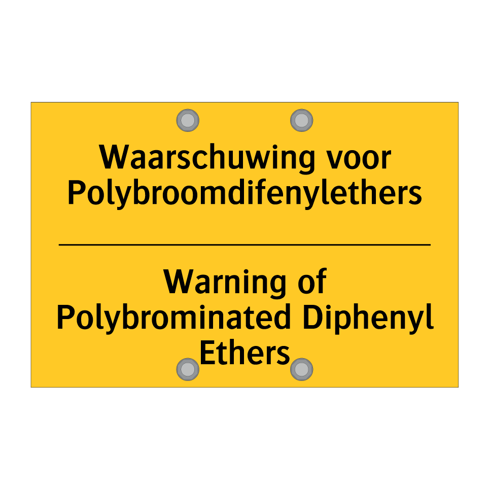 Waarschuwingsbord met de tekst Waarschuwing voor Polybroomdifenylethers / Warning of Polybrominated Diphenyl Ethers