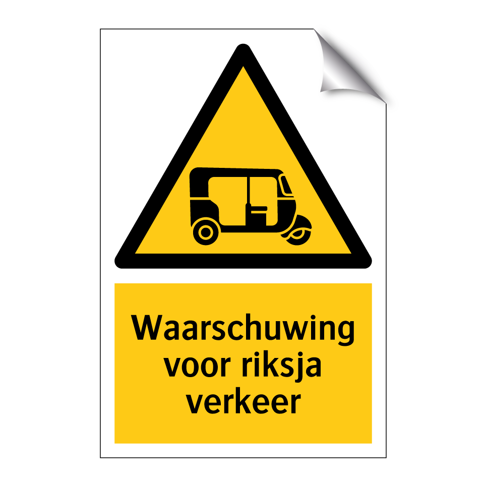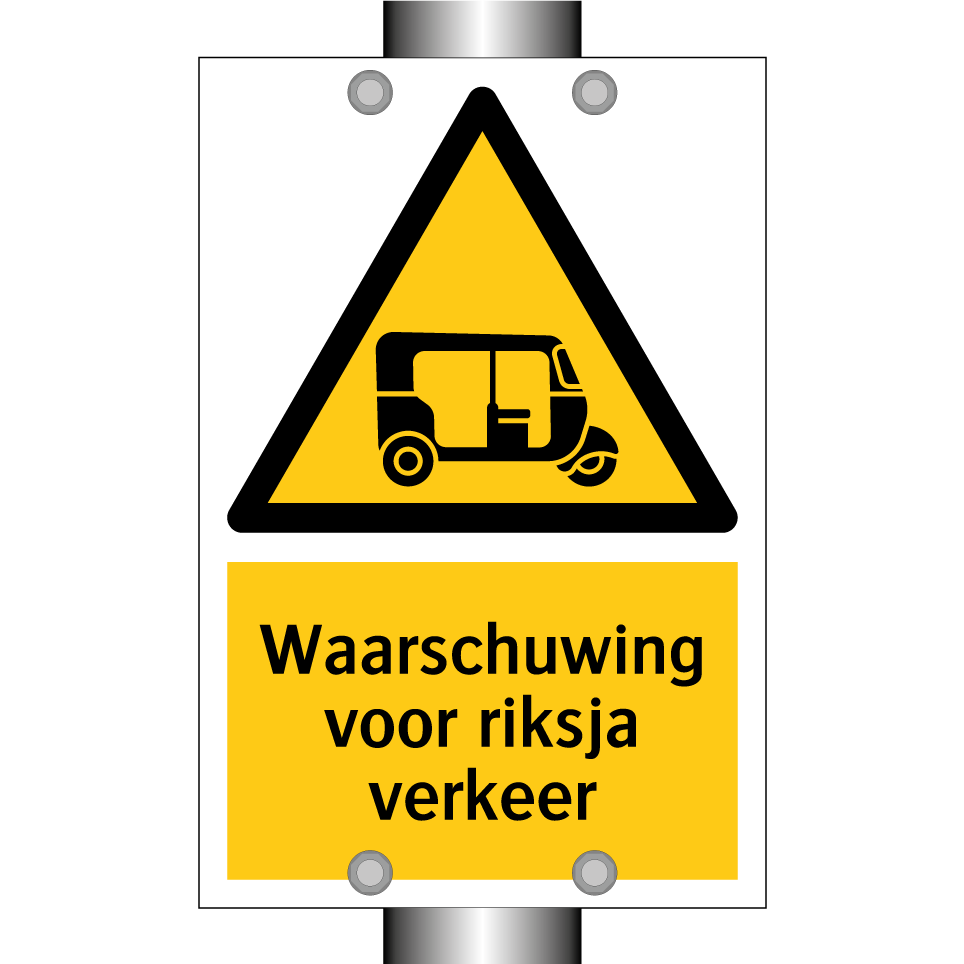 Waarschuwingsbord met de tekst Waarschuwing voor riksja verkeer