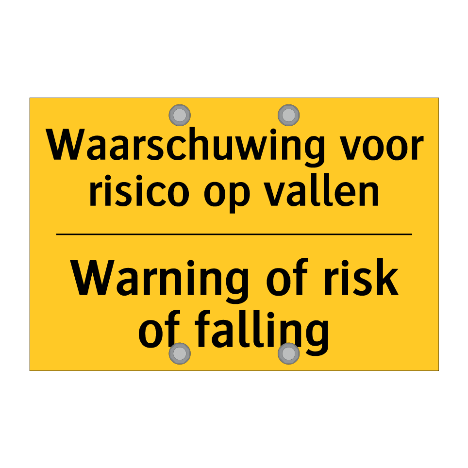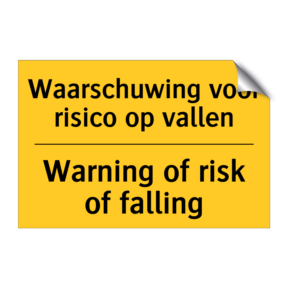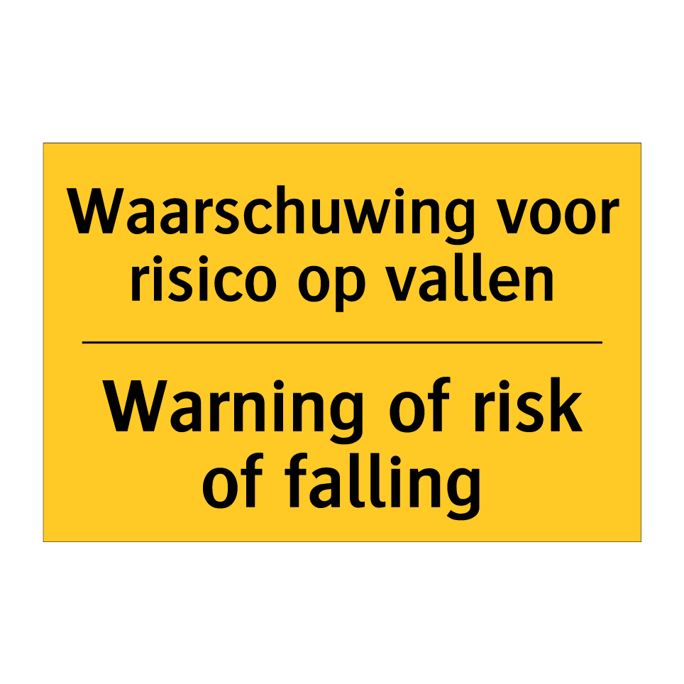 Waarschuwingsbord met de tekst Waarschuwing voor risico op vallen / Warning of risk of falling