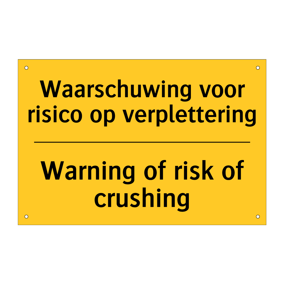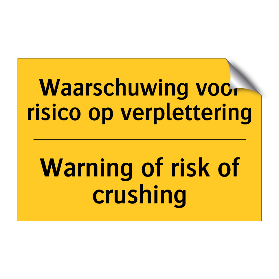 Waarschuwingsbord met de tekst Waarschuwing voor risico op verplettering / Warning of risk of crushing